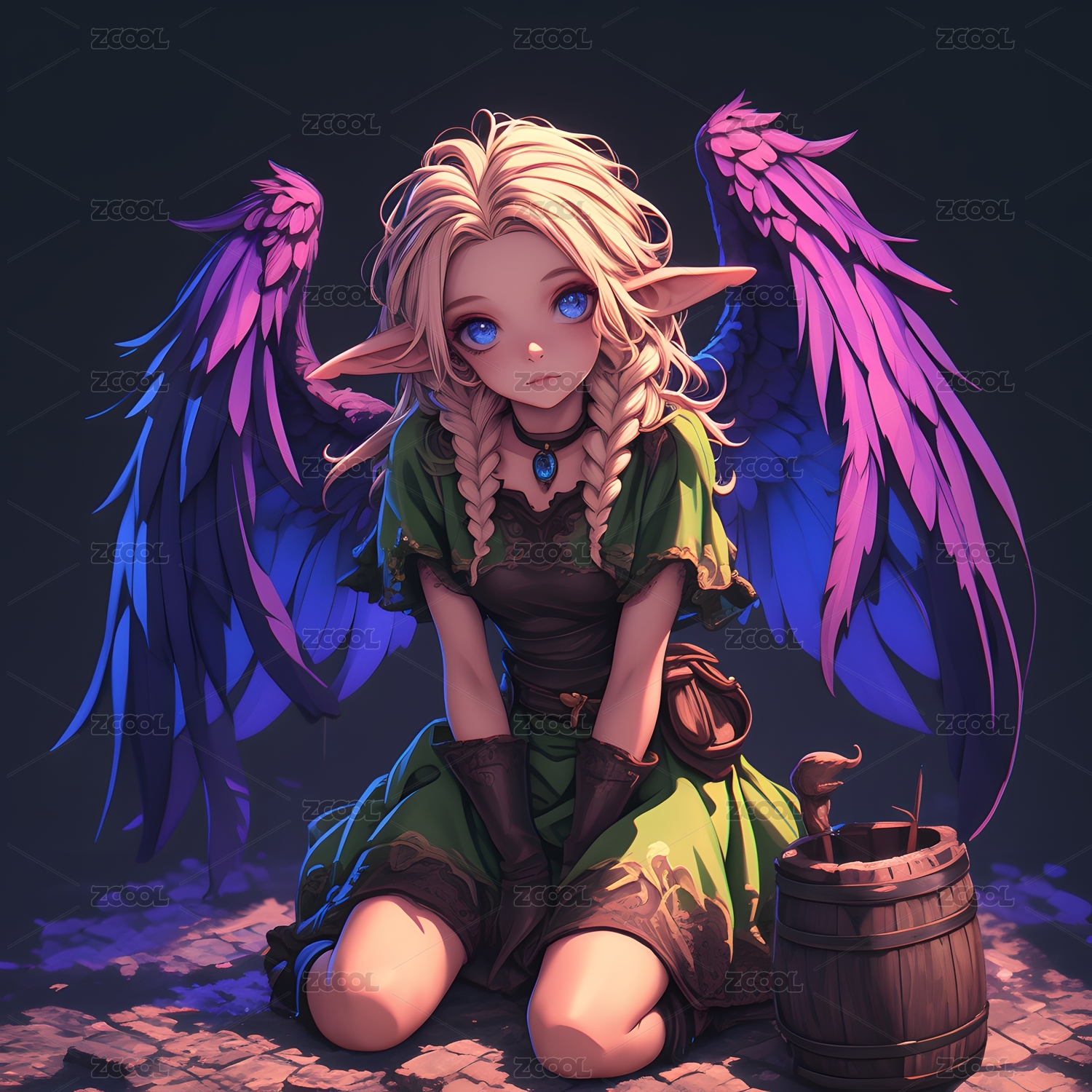 可爱,动漫,绘画,绿色,短发,萌系,棕色,精灵,少女,翠衣