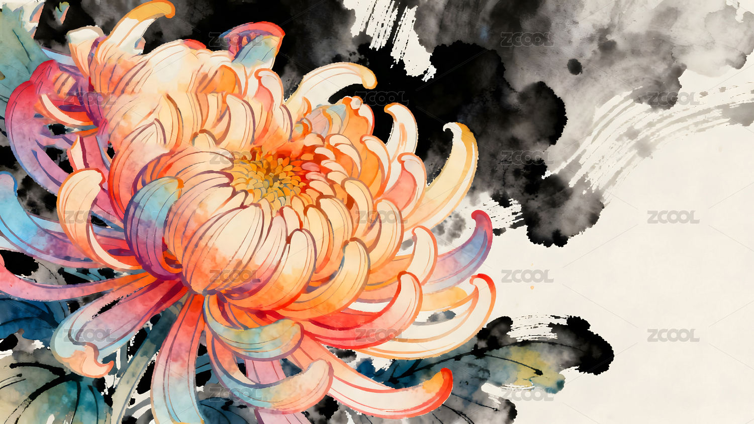 水墨风菊花插画