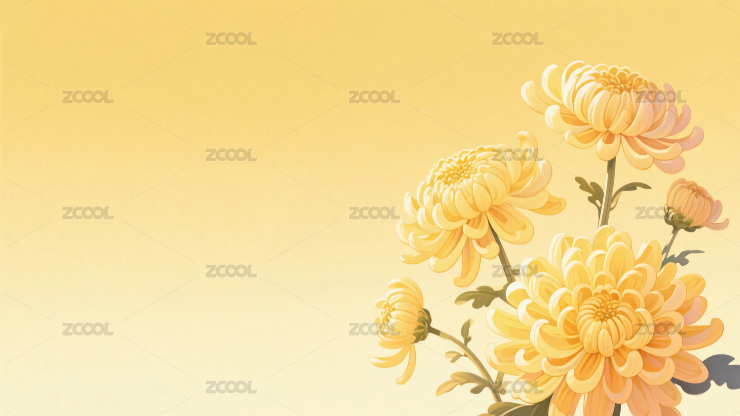 绢笔画淡绿渐变金箔菊花背景