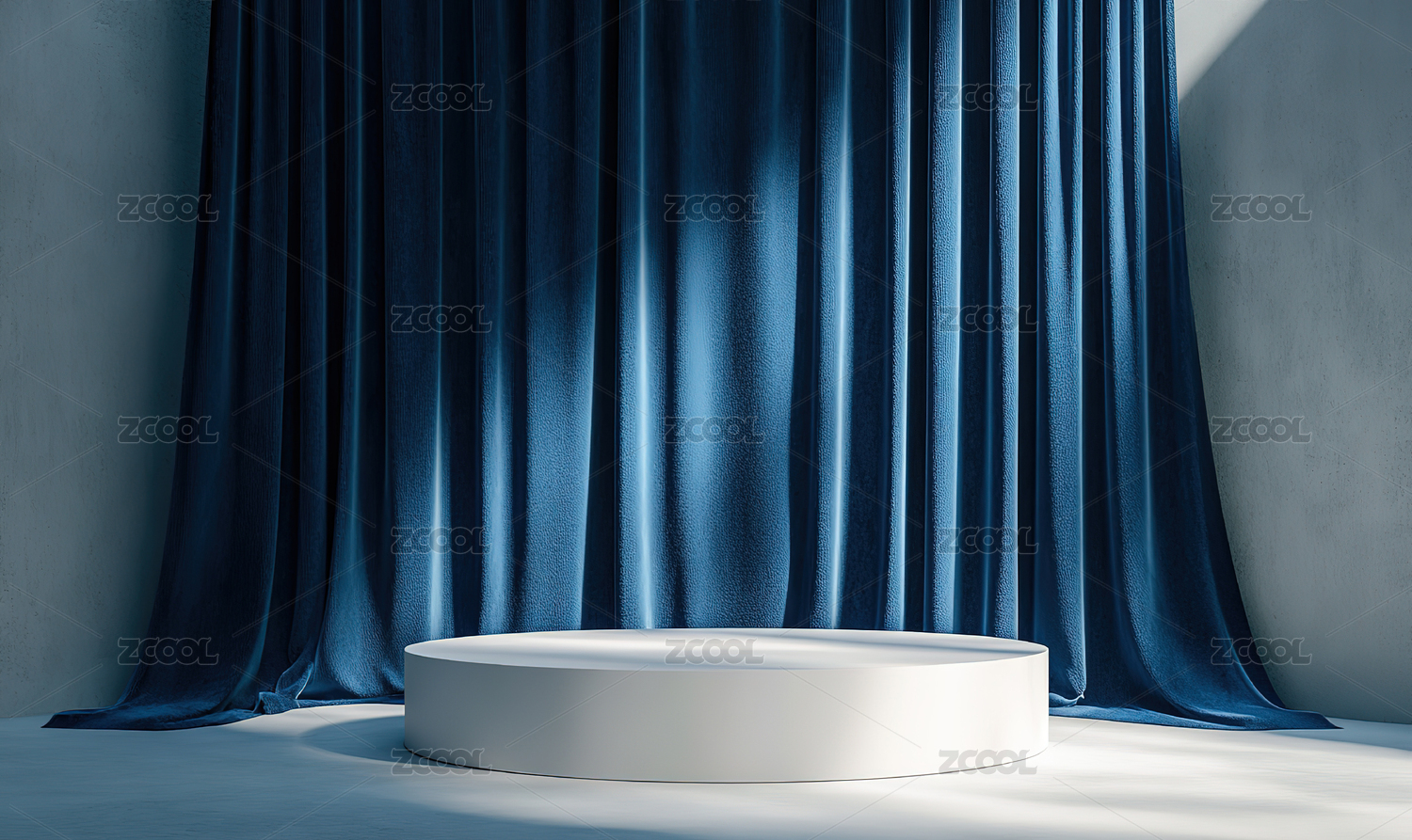 蓝色圆形台与灰色幕布背景