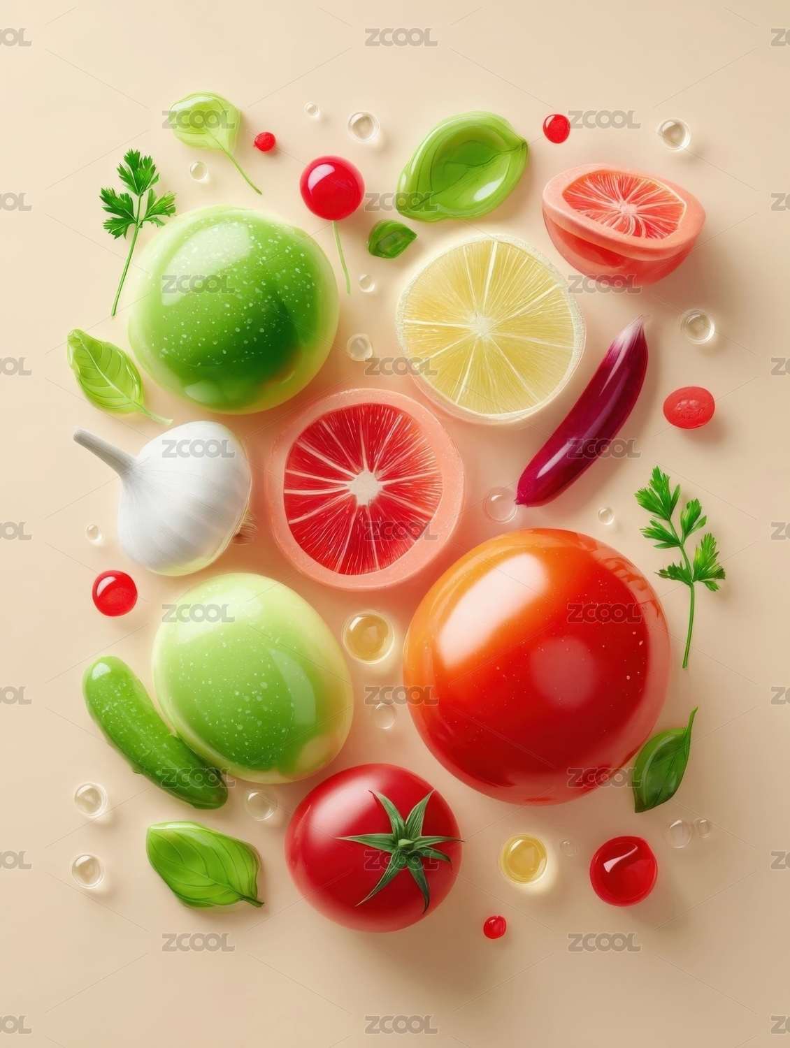 桌子上的彩色蔬菜3D可爱卡通玩具模型背景