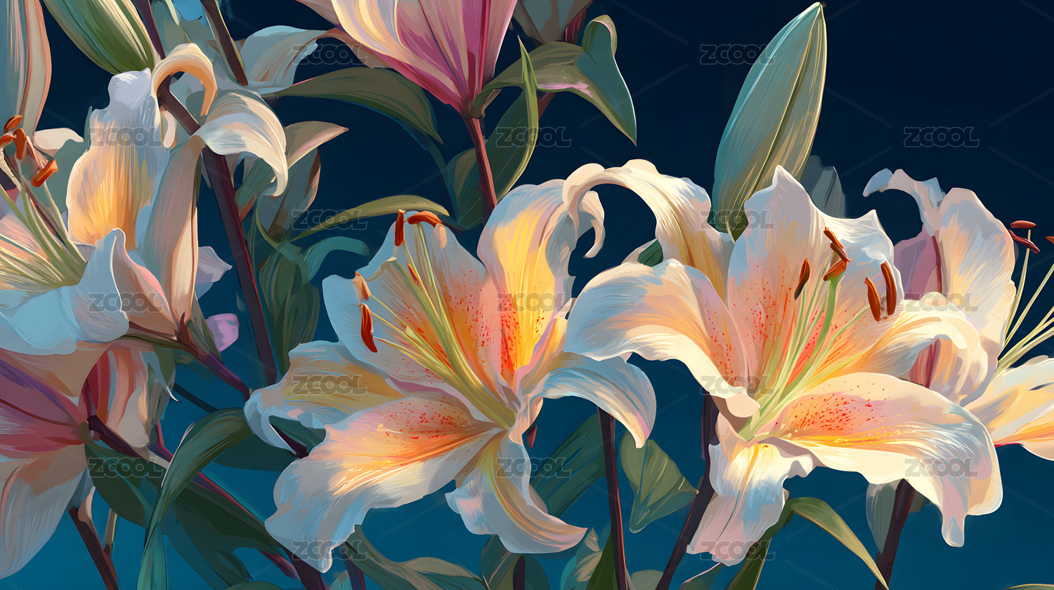 盛开的百合花插画