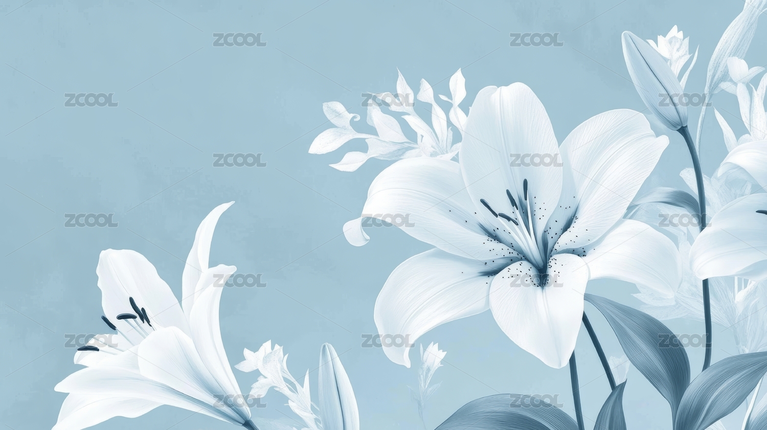 白色百合清新装饰场景