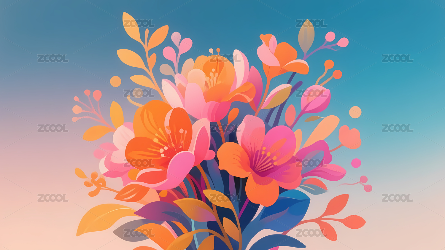 斑斓粉橙蓝花束