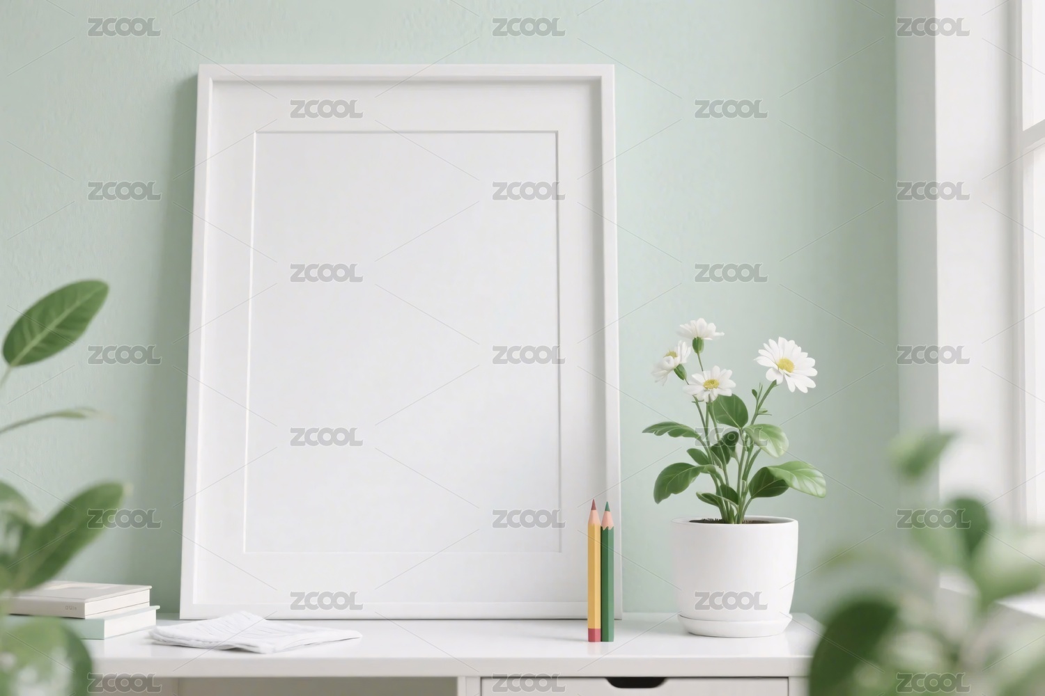 简约相框书桌台灯纯色背景商业广告海报壁纸