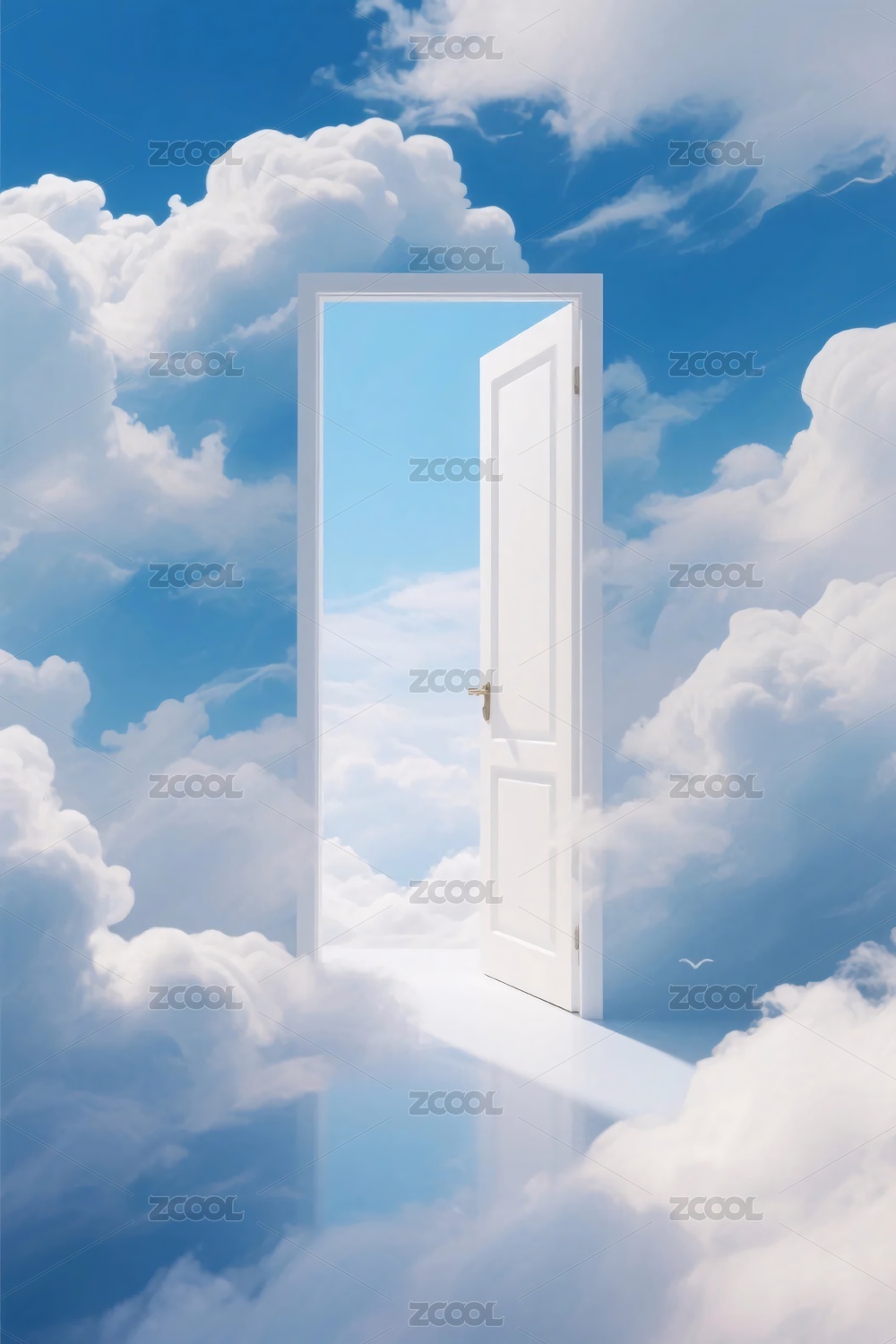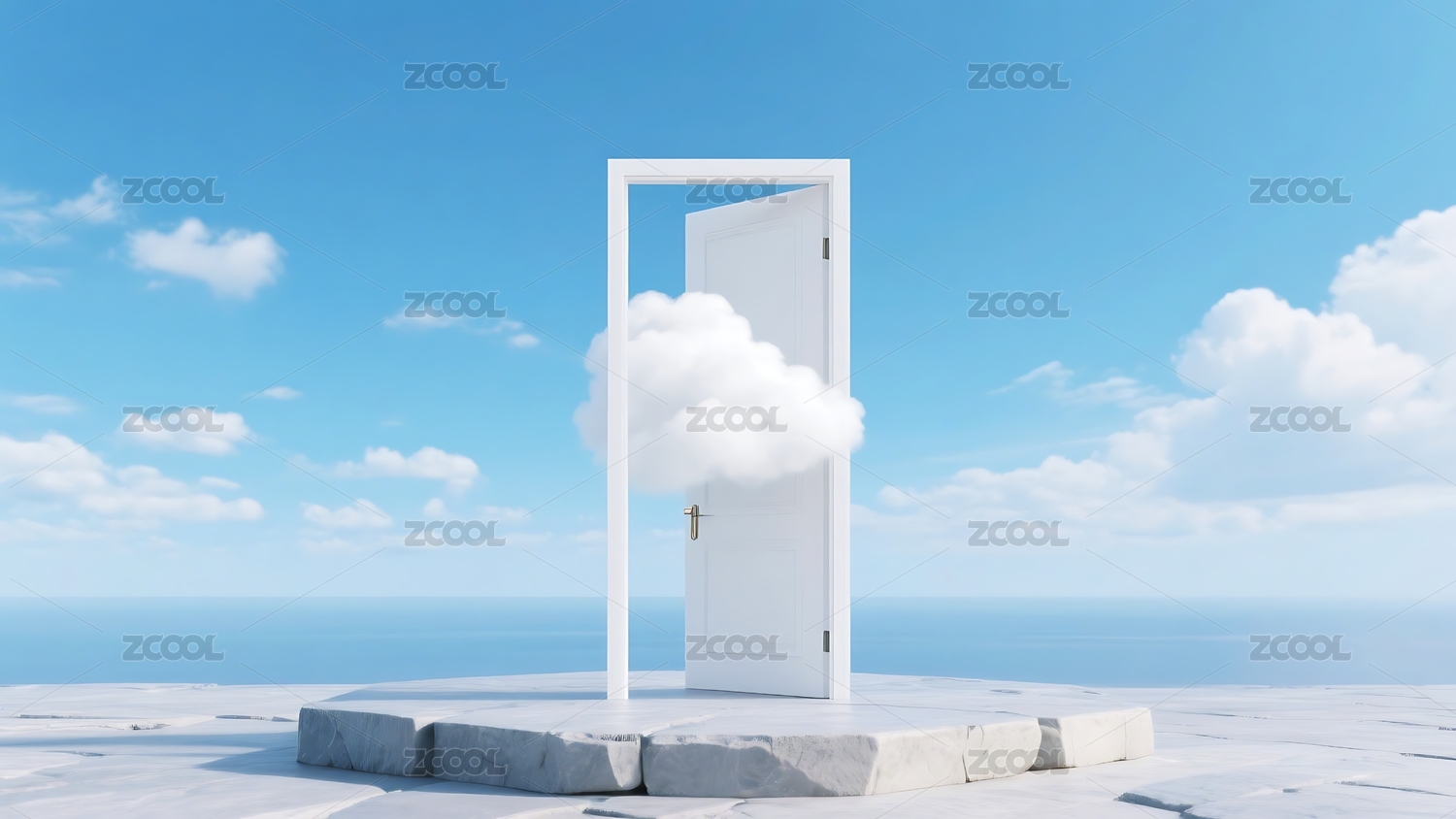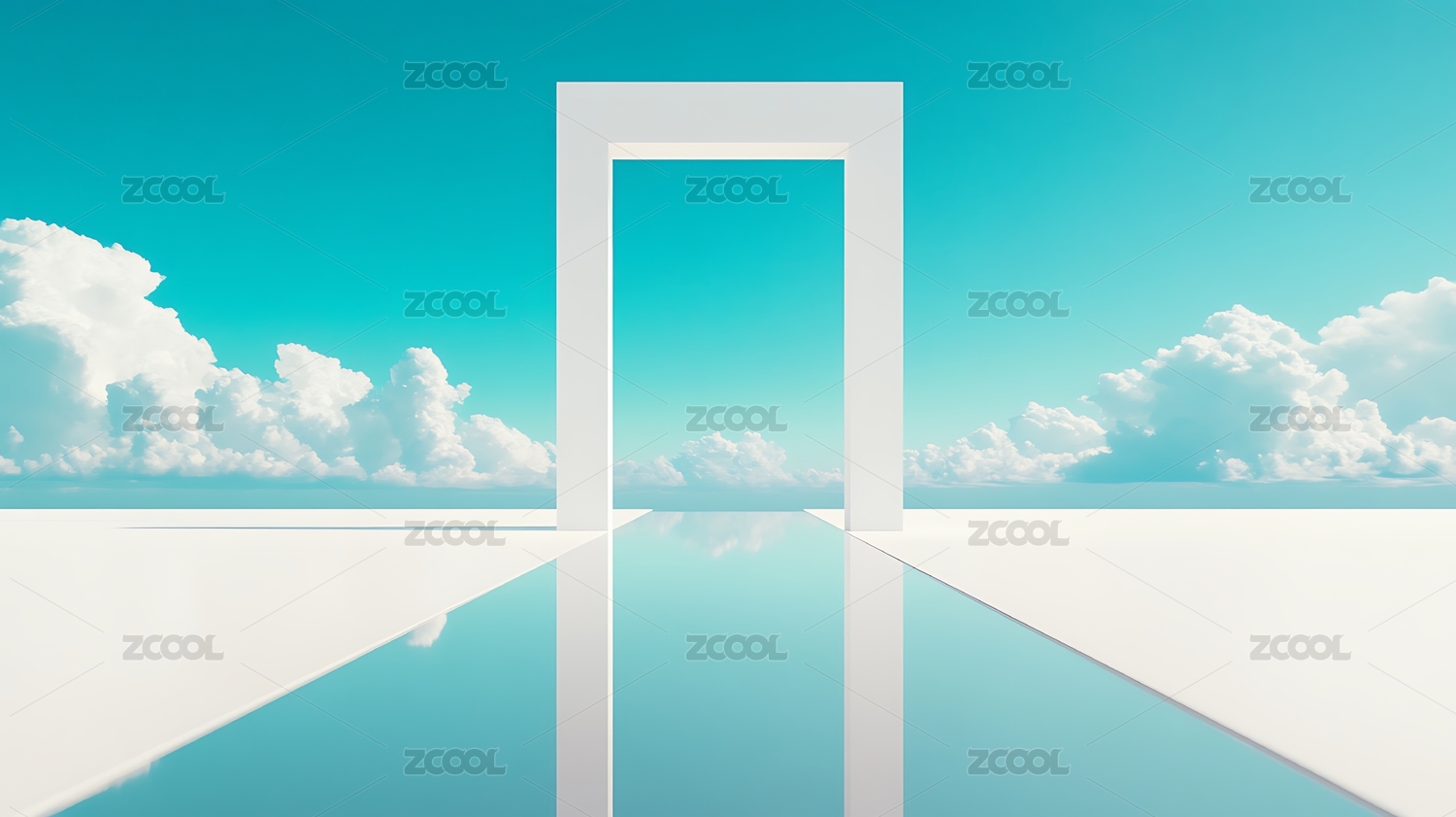 通道,平台,构图,空间,蓝天,明亮,云朵,门框,极简,超现实