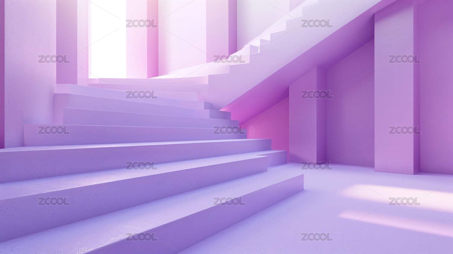 蓝色和橙色柔和色彩 渲染楼梯背景