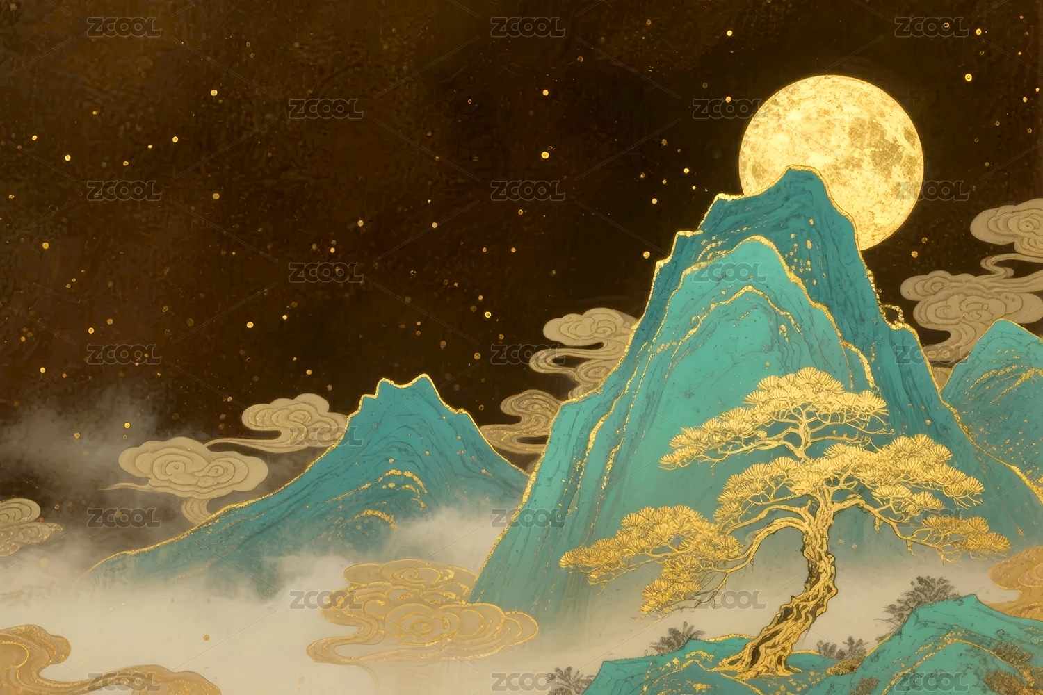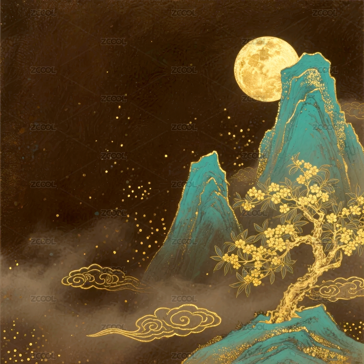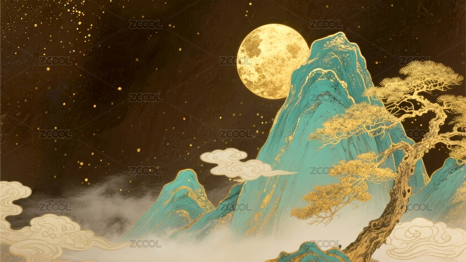 金山明月国风夜景场景