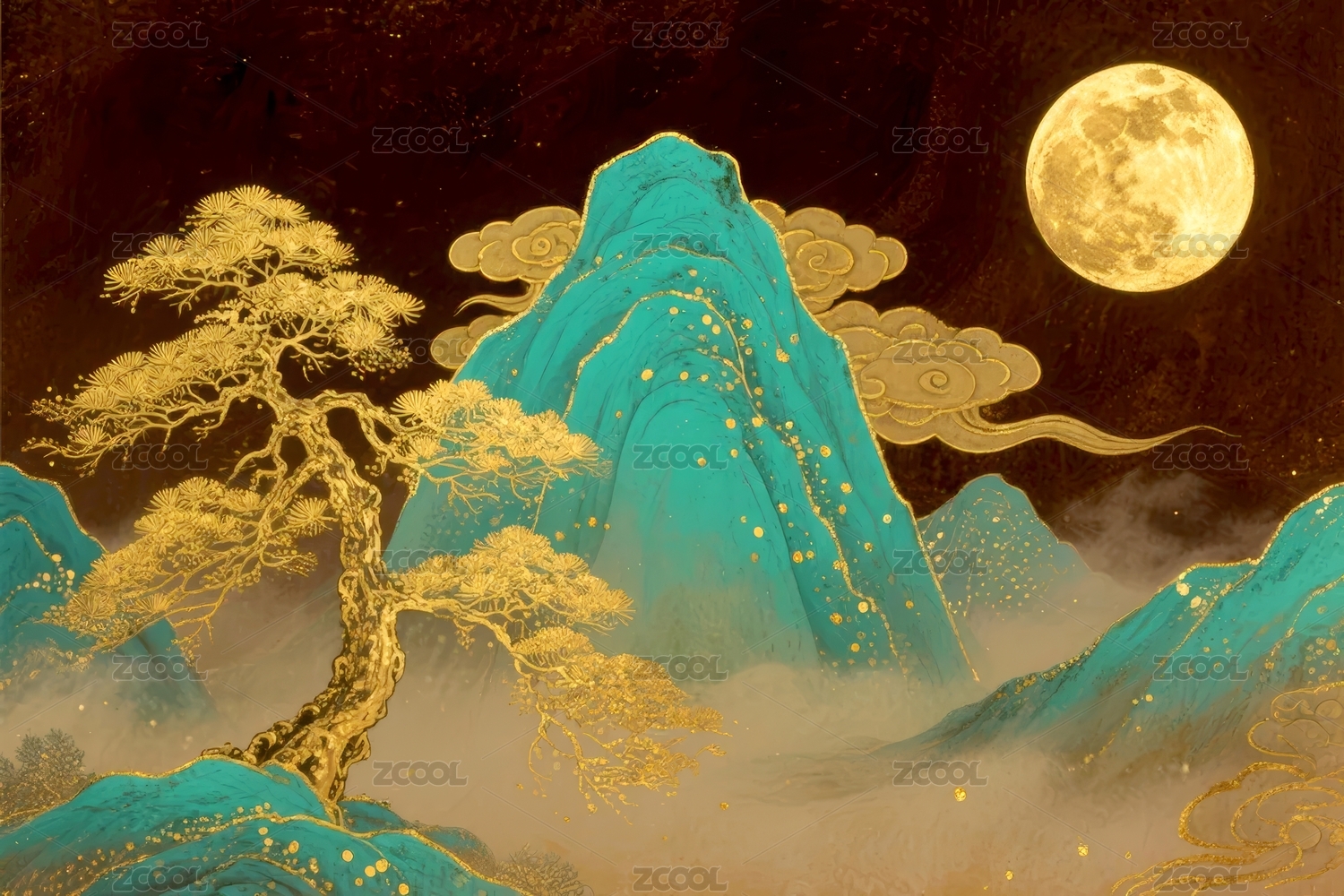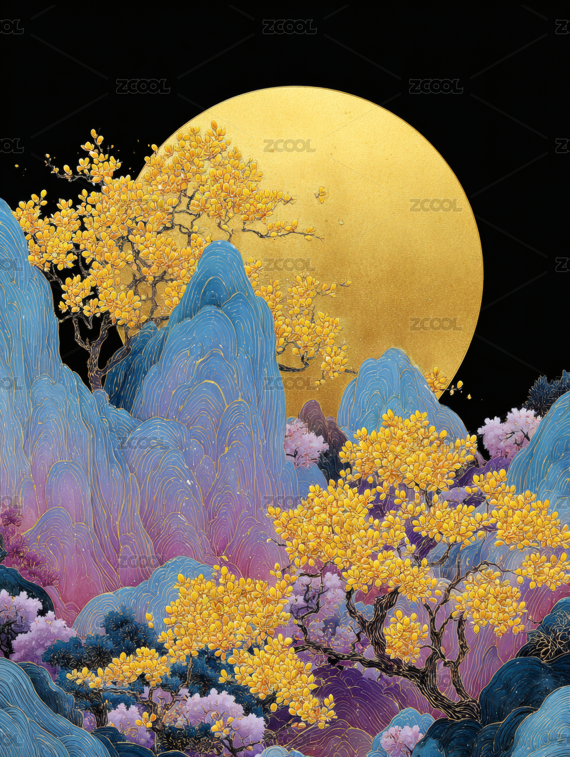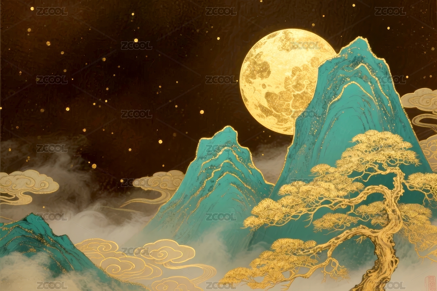 金山明月国风夜景场景