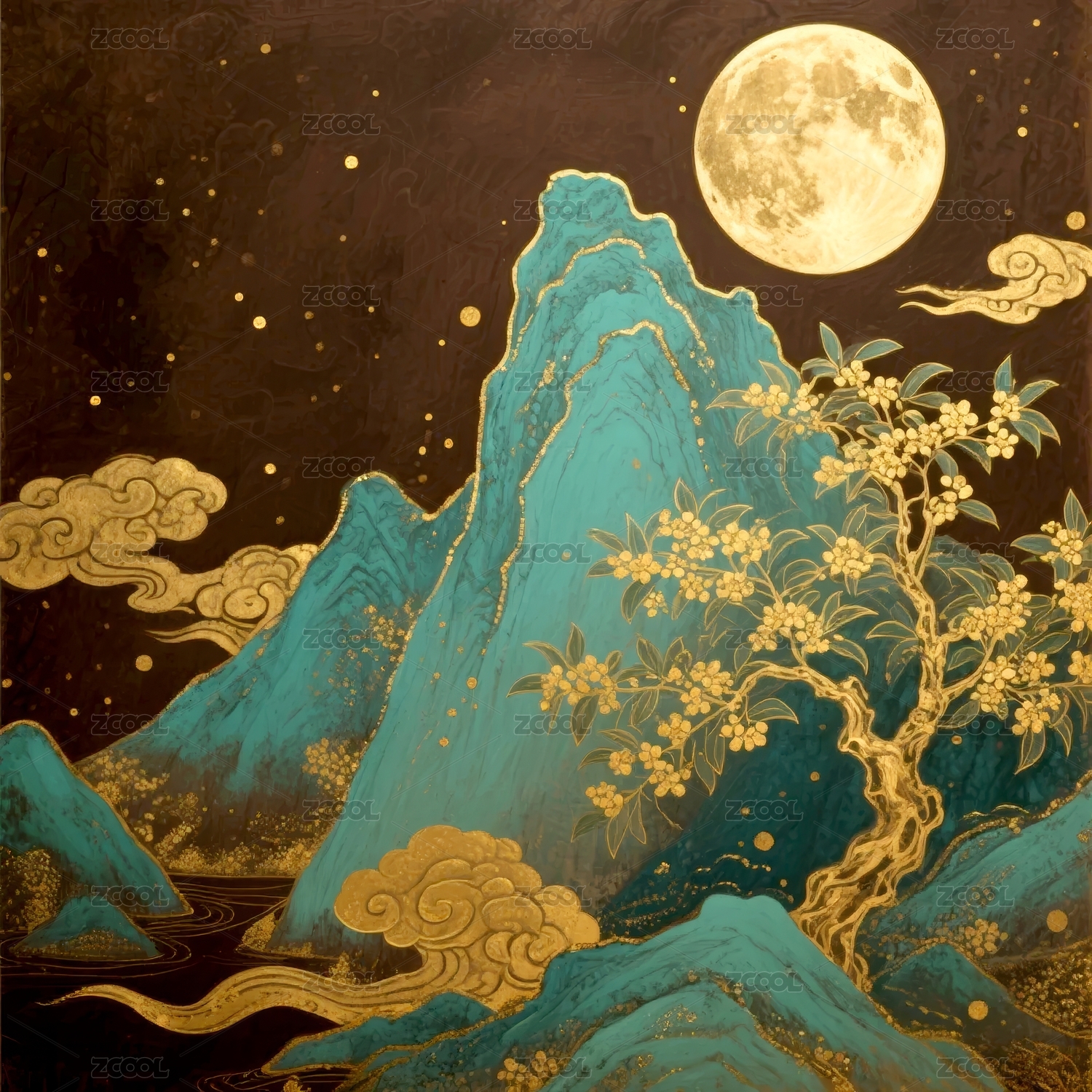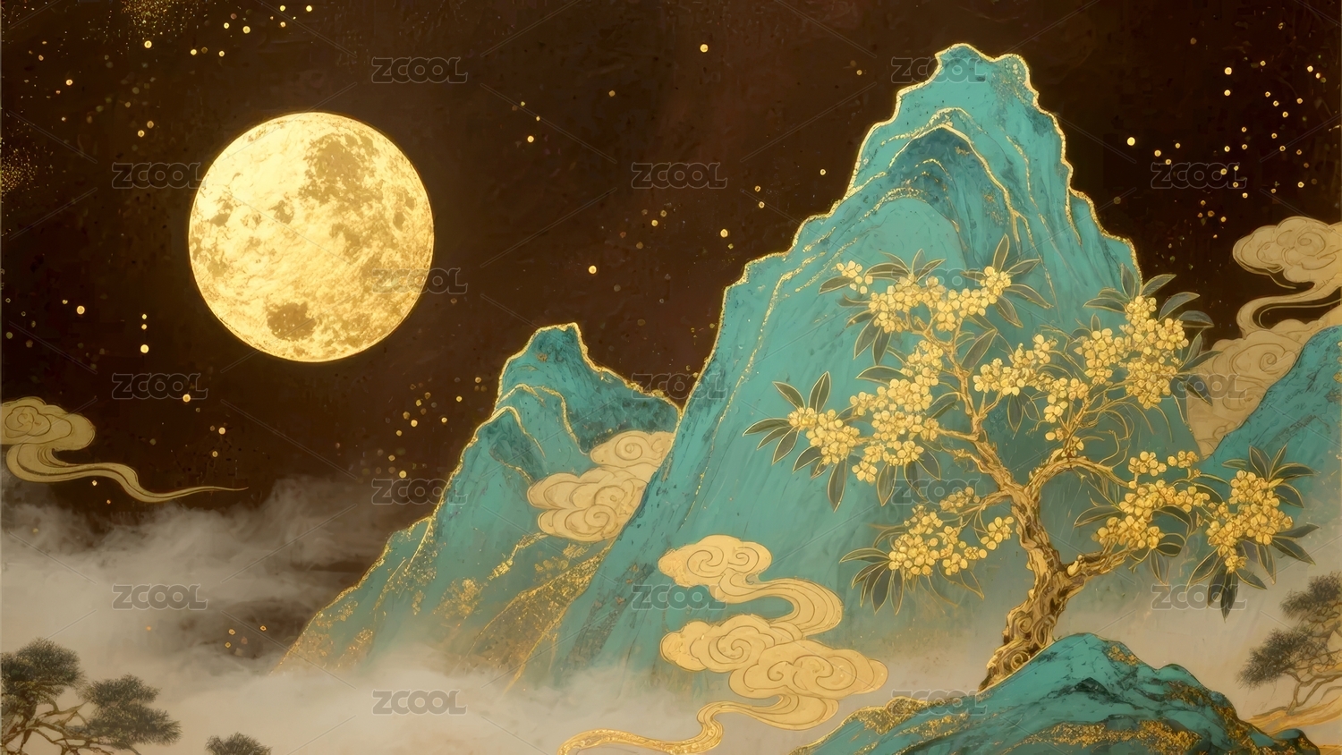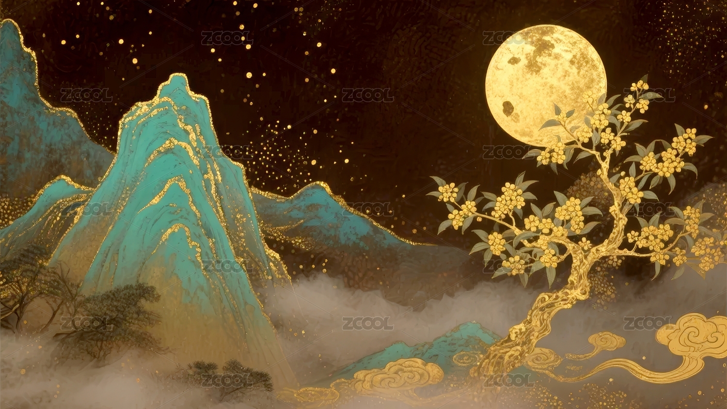 桂花盛开的中秋节满月夜景