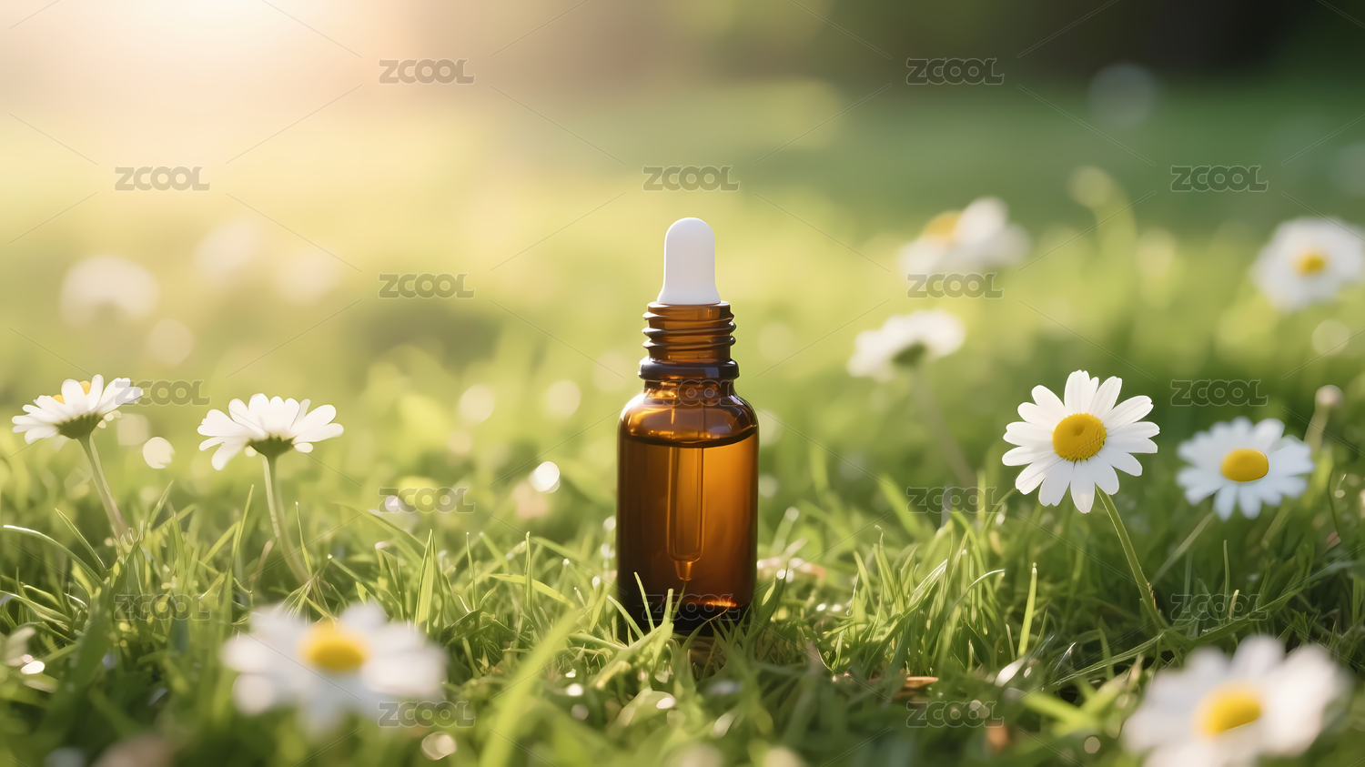 绿色,雏菊,清新,白色,瓶,棕色,滴管,草地,玻璃,宁静