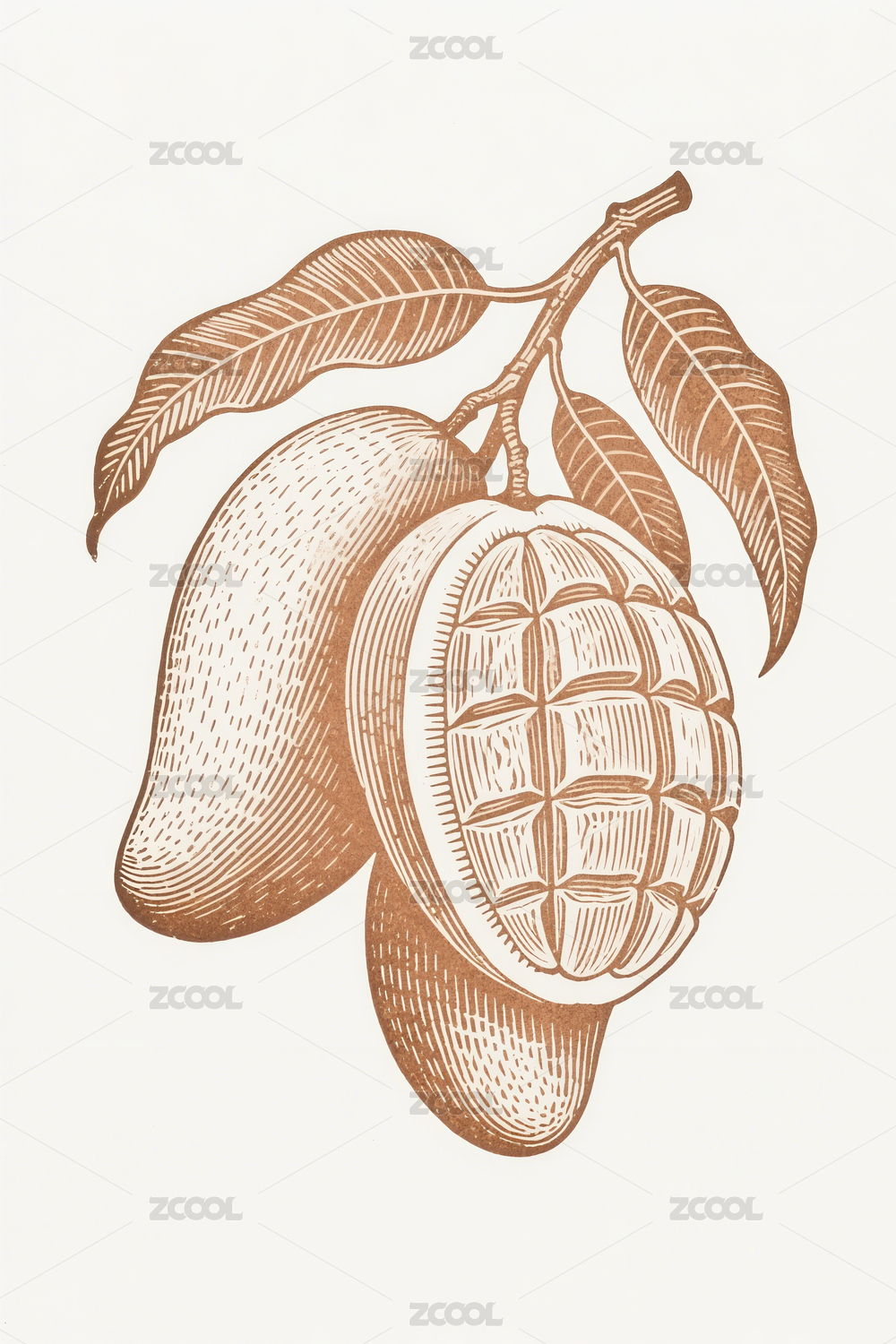 卡通线稿水果手绘元素插画热带水果芒果素材