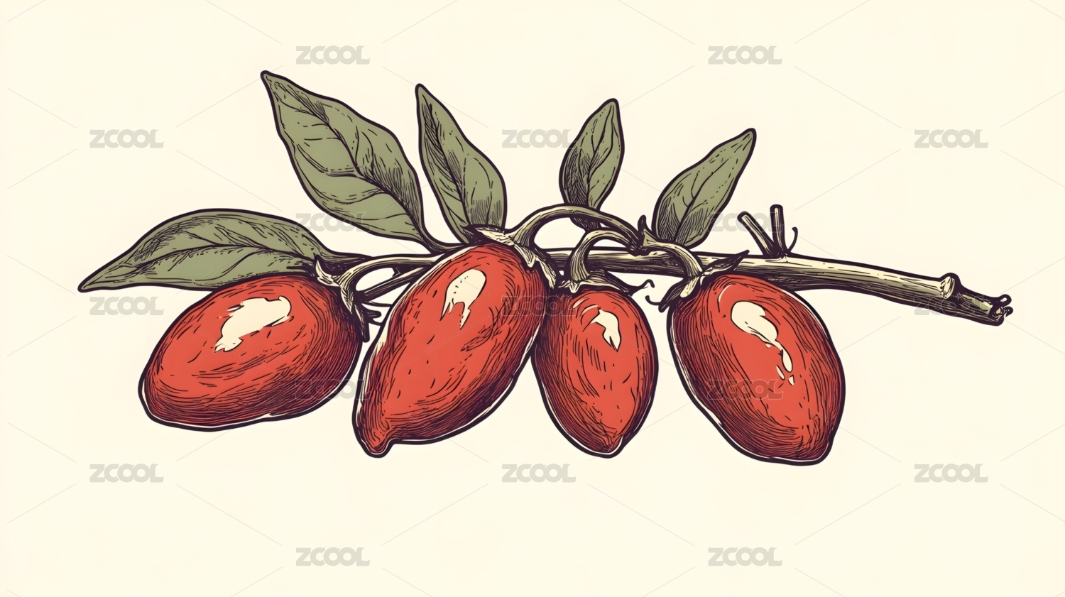枸杞,新鲜,水珠,水滴,黑金配色,插画,简约,装饰画,水果,艺术