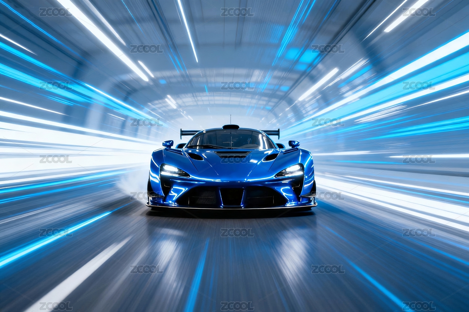 未来感蓝色跑车高速行驶