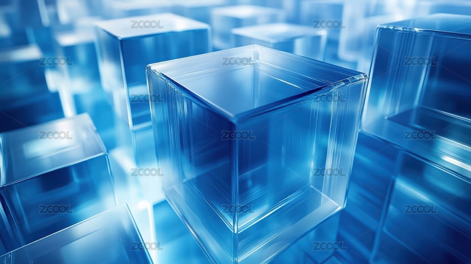 蓝色透明立方体科技感