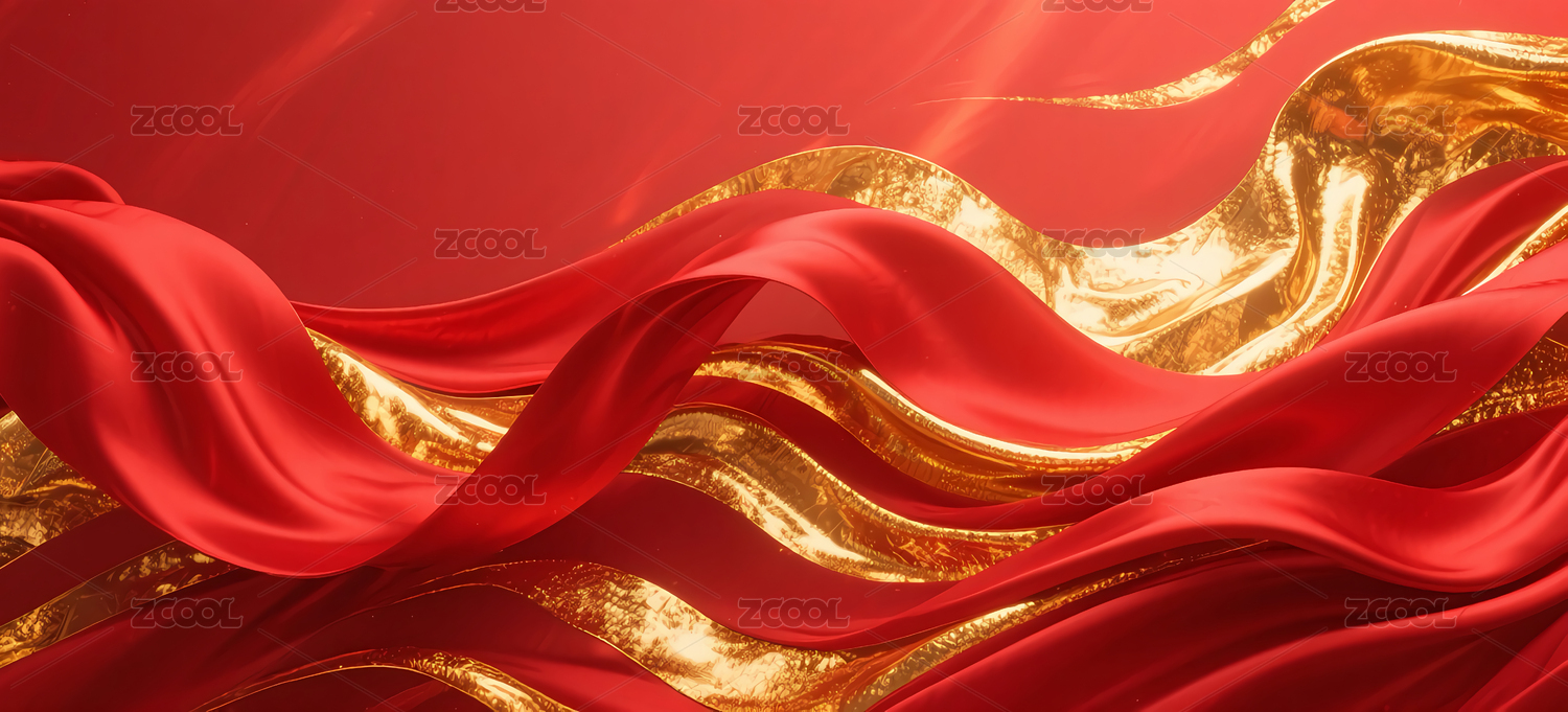 金色丝绸在红色背景上飘动