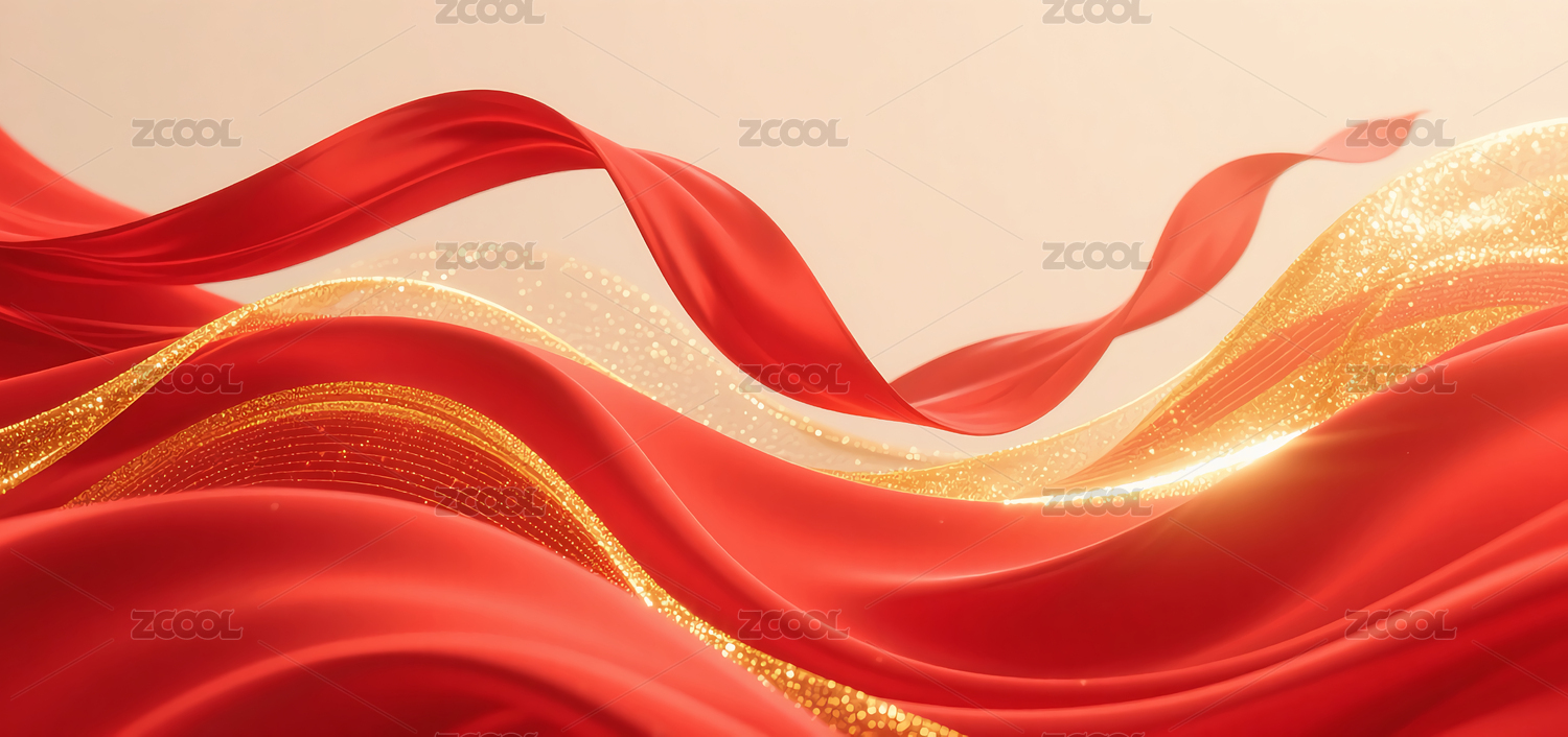 主视觉,场景,背景,装饰,光影,红绸,金色,庆典,丝带,动感
