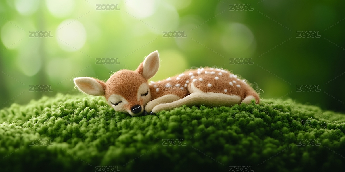 梅花鹿可爱唯美野生动物3D卡通插画壁纸