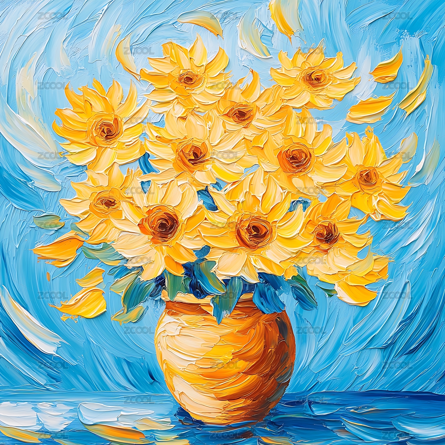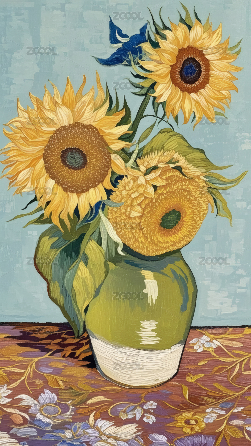 艺术,蓝色,花朵,美丽,鲜艳,明亮,绽放,金色,黄色,向日葵