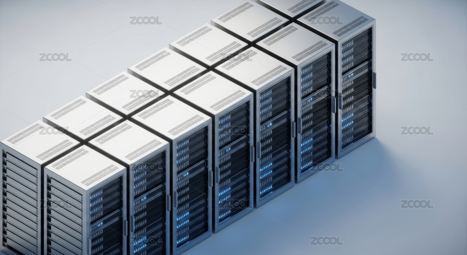 三维渲染的现代化高科技的服务器机房,强大的数据库和运算存储能力。