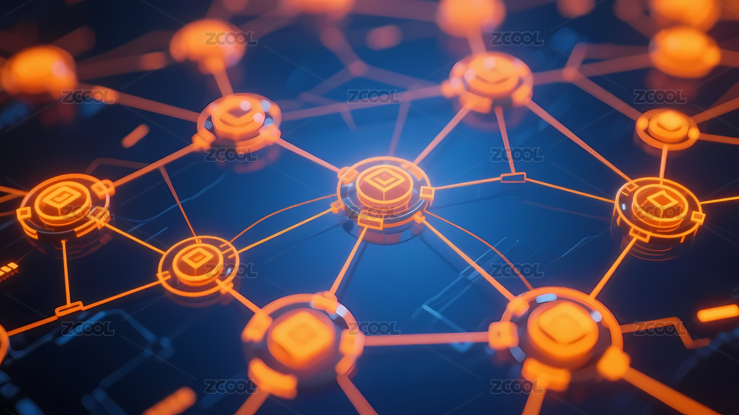 蓝色,结构,科技,未来,橙色,视觉,深蓝,线条,节点,网络