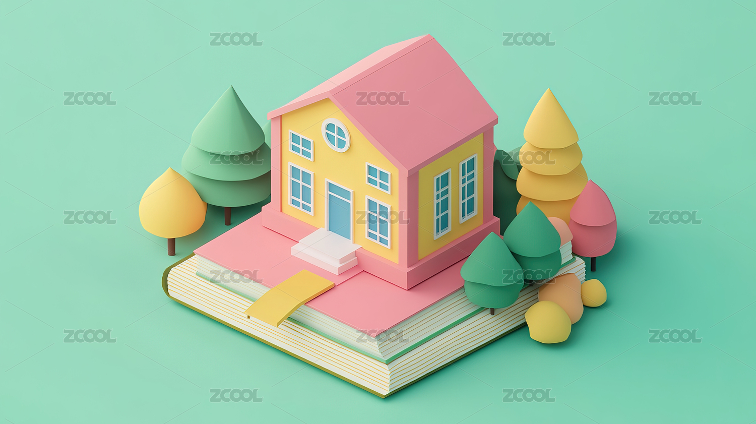 花朵,柔和,梦幻,书本,打开,小房子,泡泡,浅绿,绿树,童话