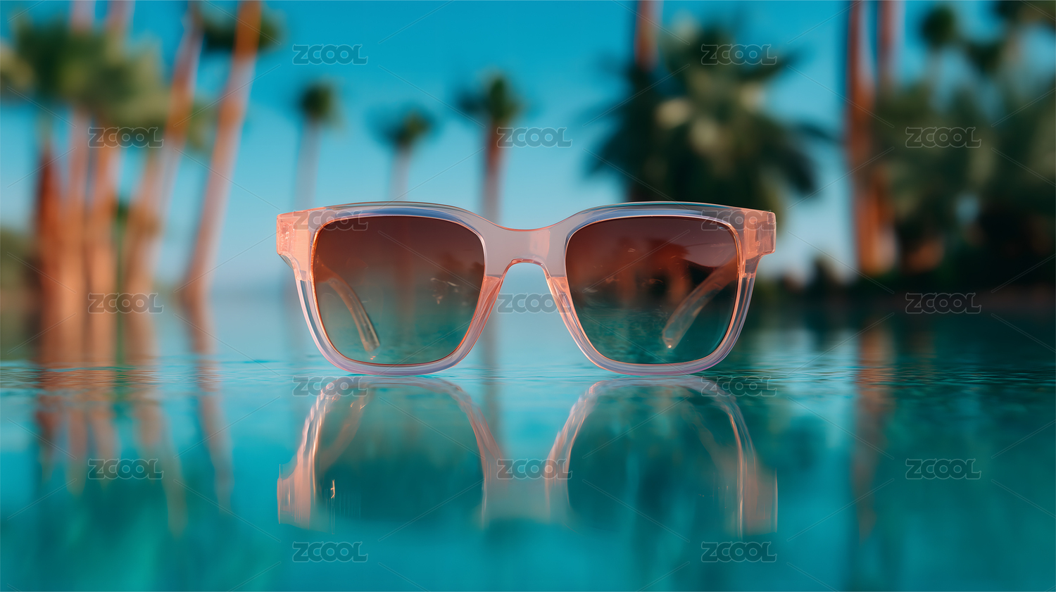 水面,棕榈树,墨镜,夏日,度假,惬意,轻松,清新,景色,海滩