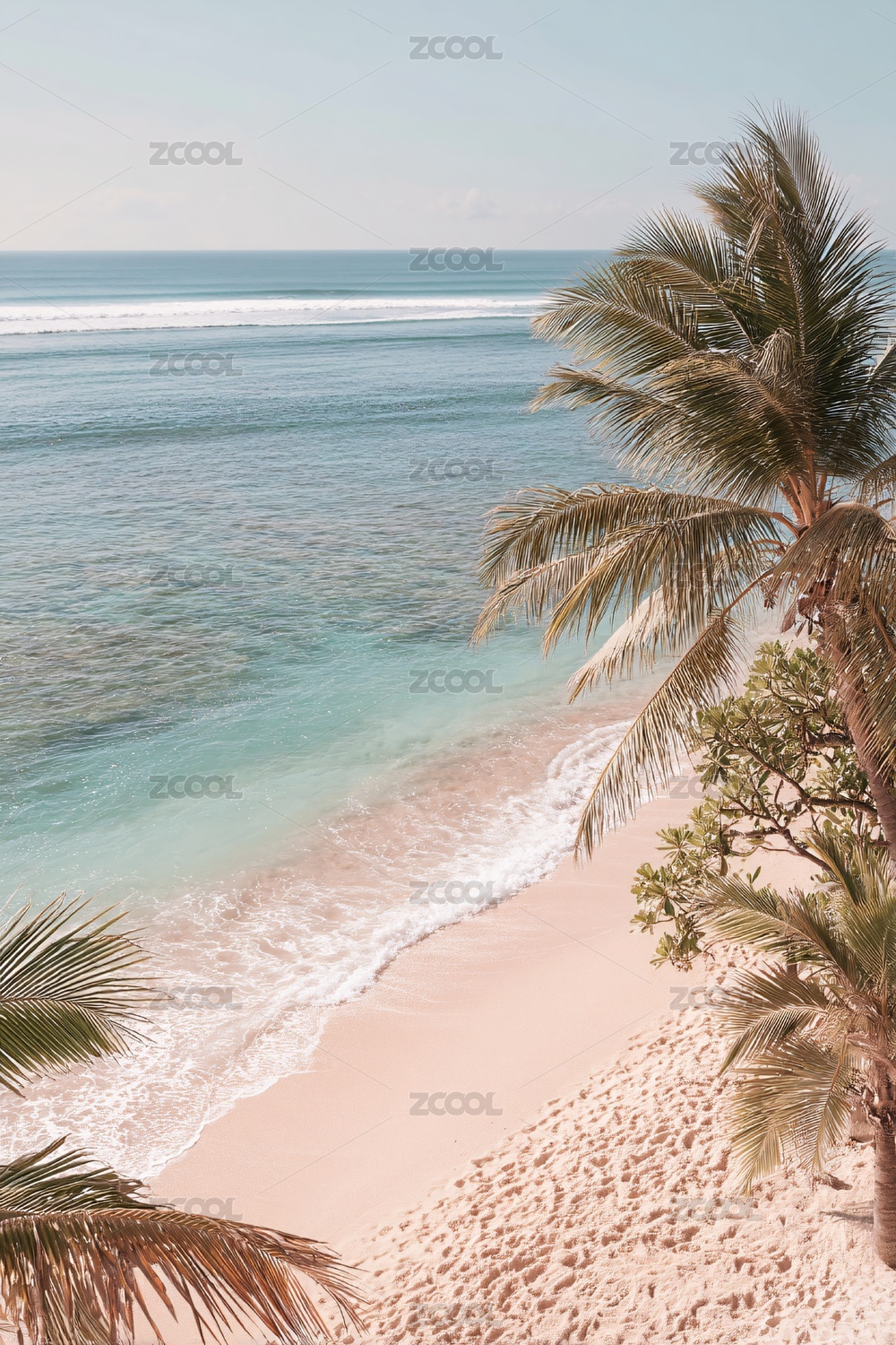 碧海金沙椰林美景,波光粼粼,梦幻海滩