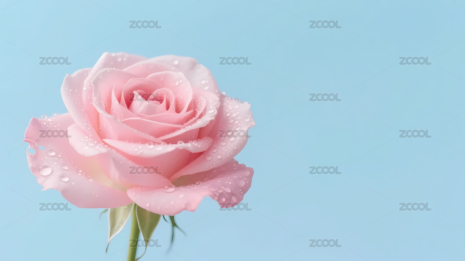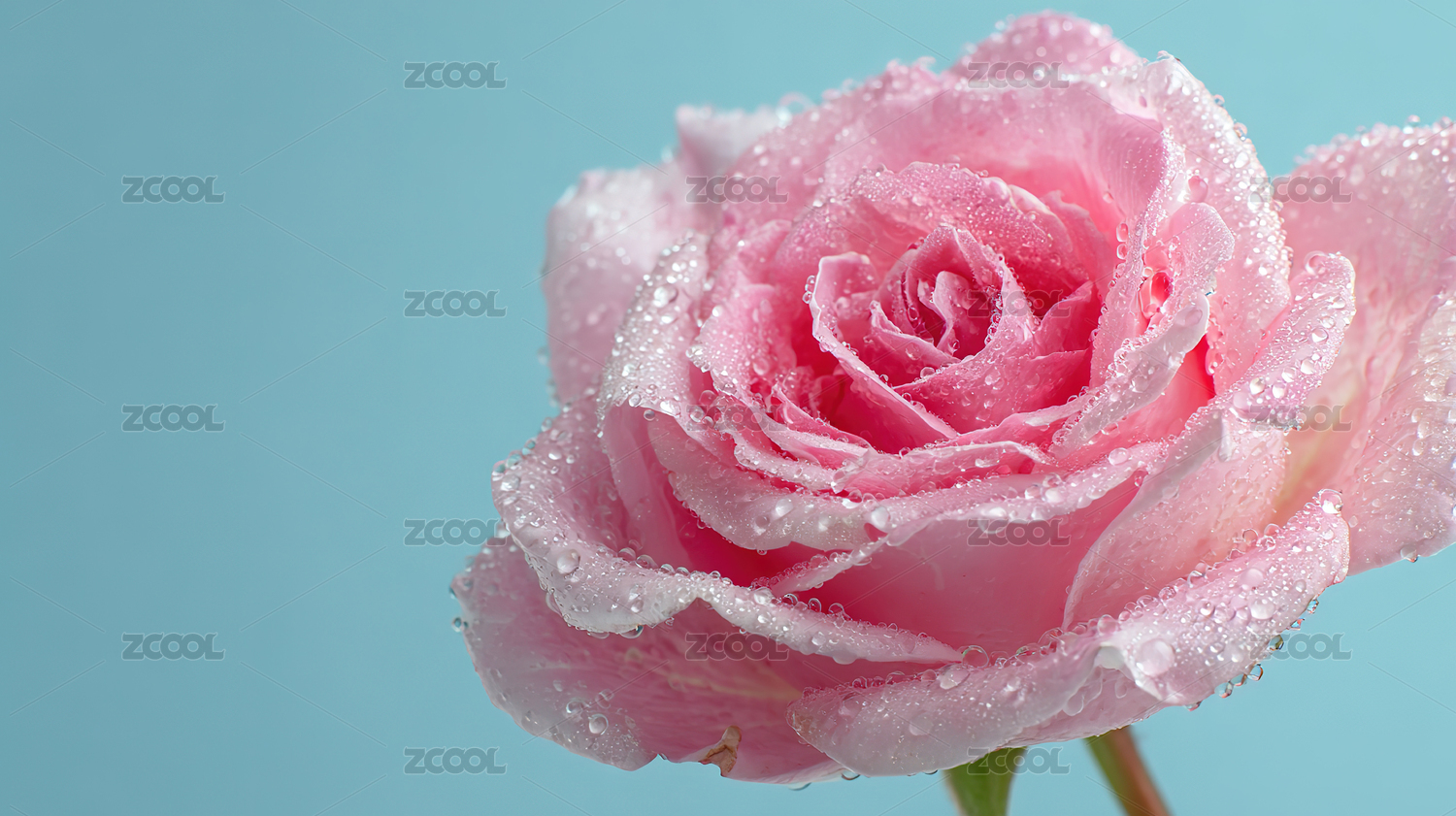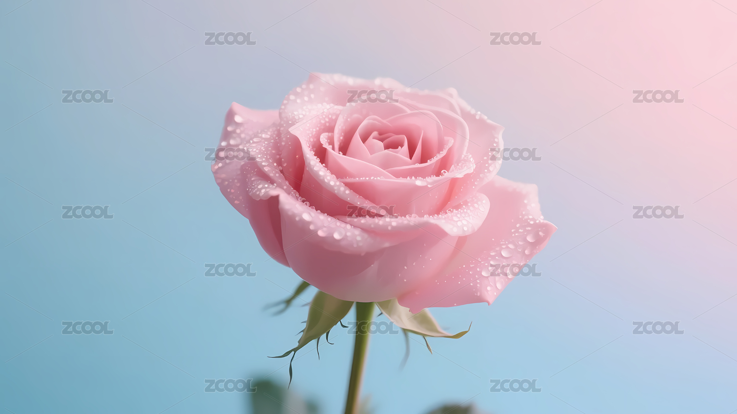 主体,渐变,浅蓝,柔和,花瓣,清新,水珠,粉红,细节,玫瑰