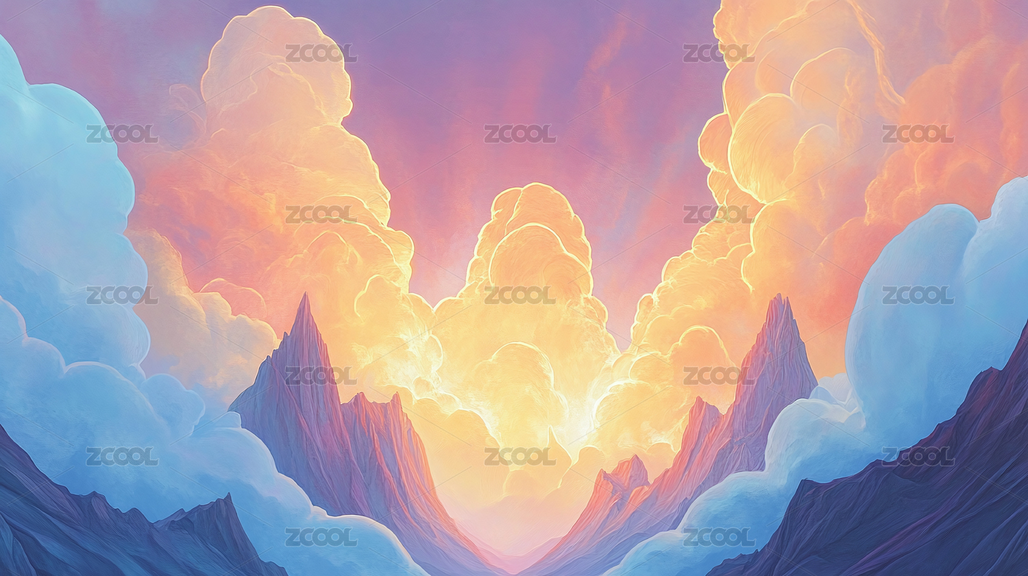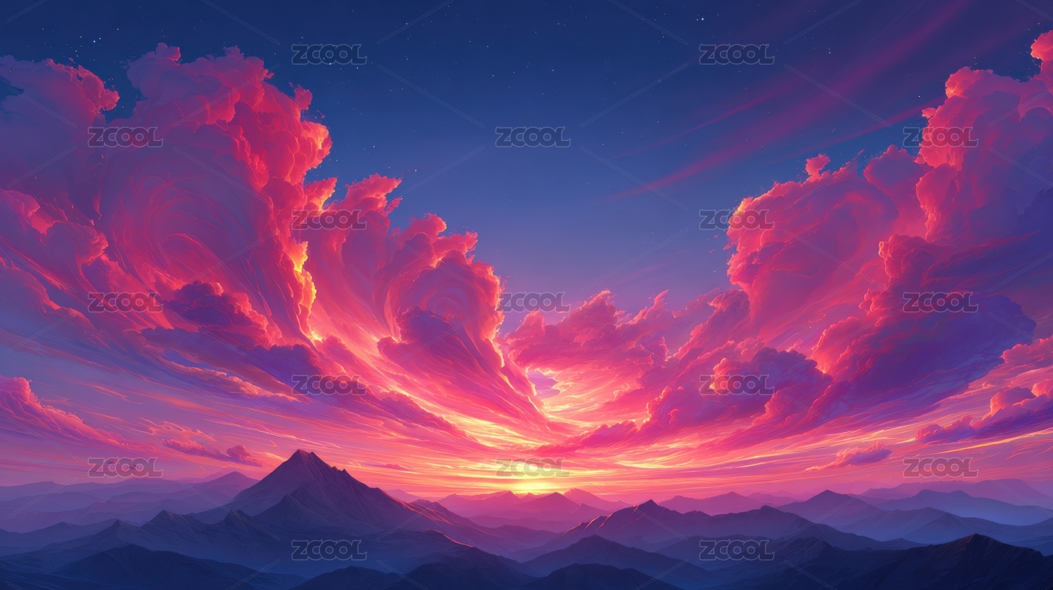 日落,云朵,天空,自然,宁静,风景,艺术,绘画,美丽,色彩