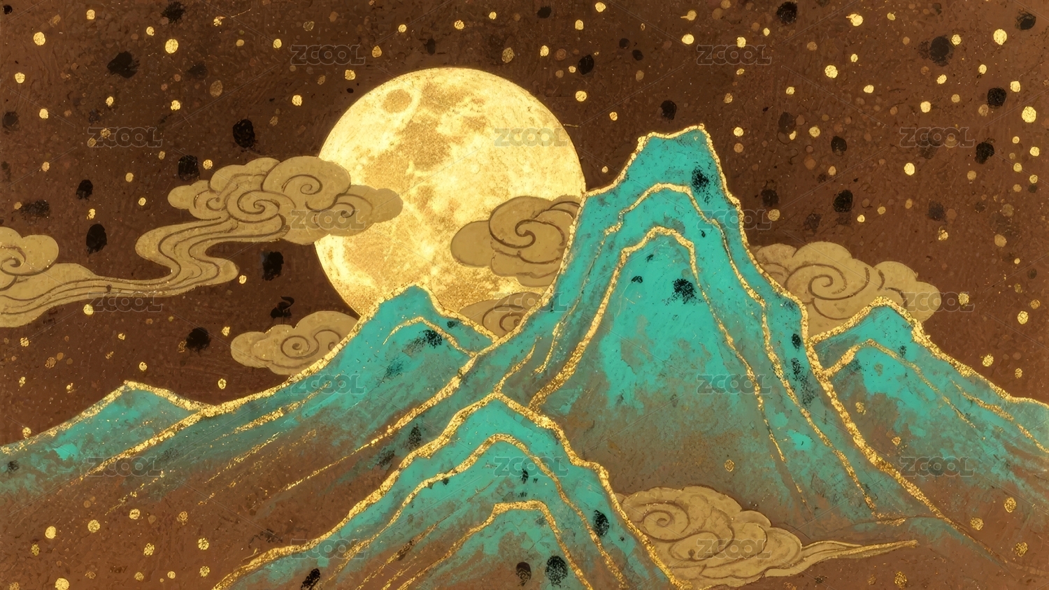 主视觉,金山,明月,国风,夜景,场景,山峦,祥云,艺术,设计