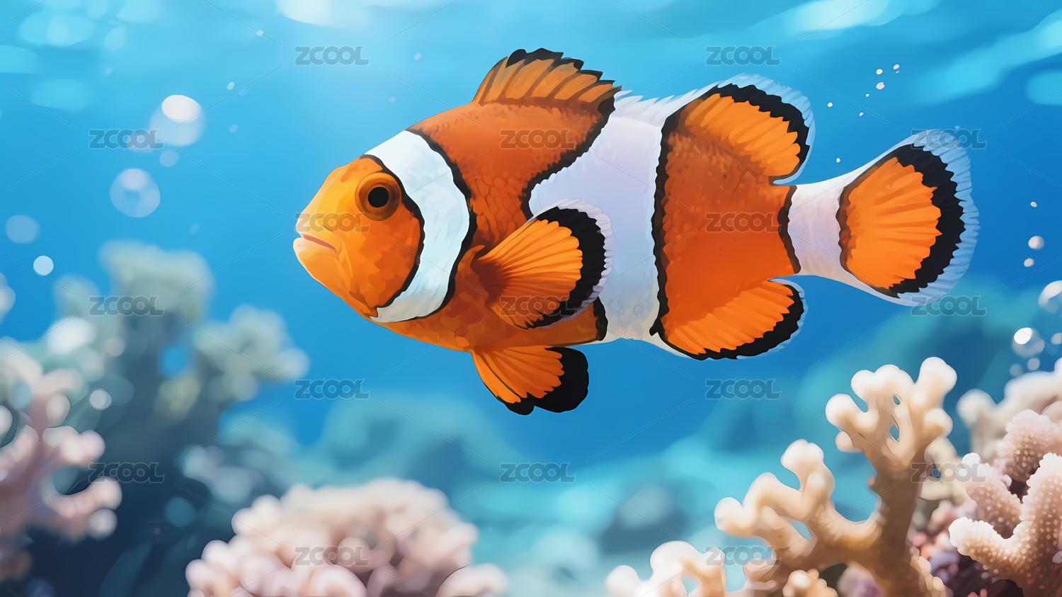 海葵鱼与珊瑚背景