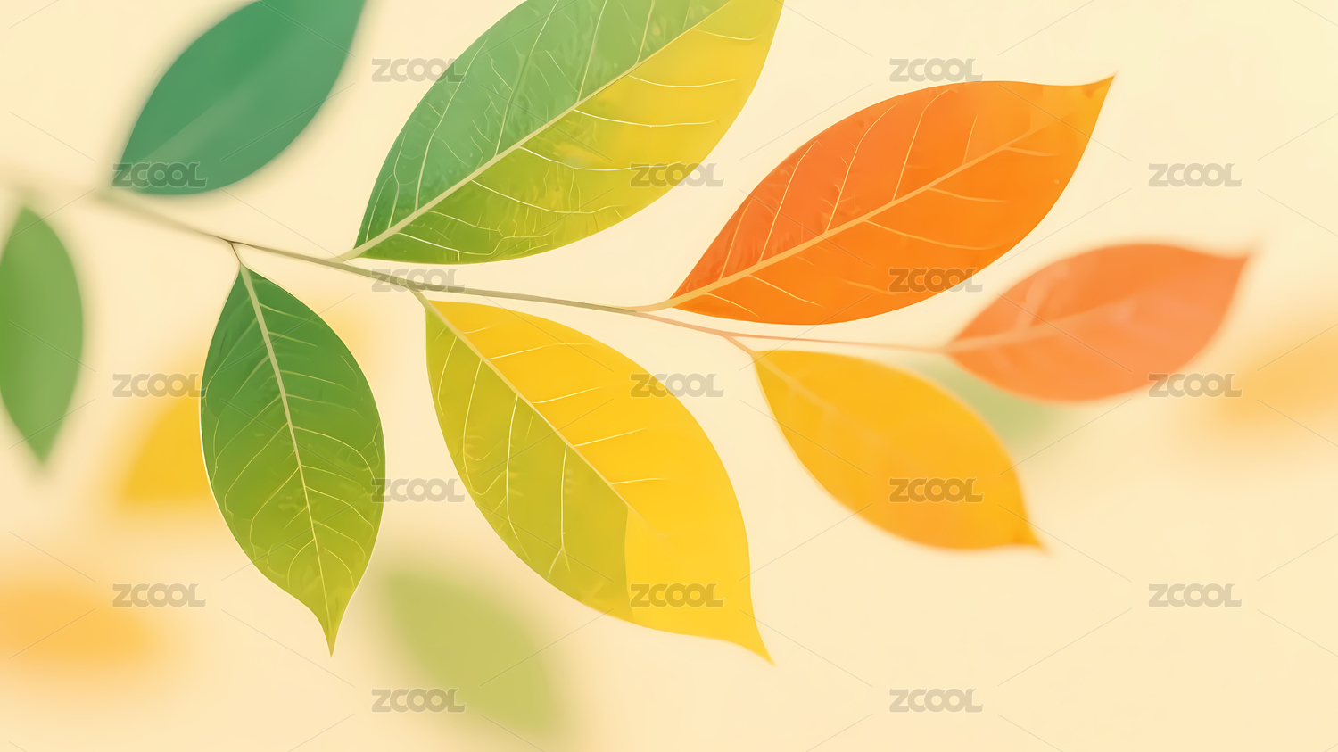 多彩秋叶与浅黄色背景