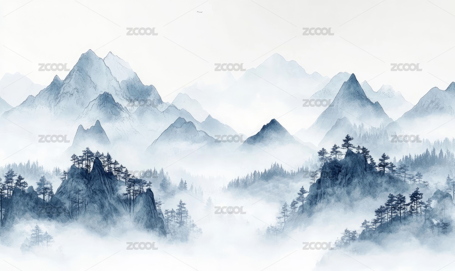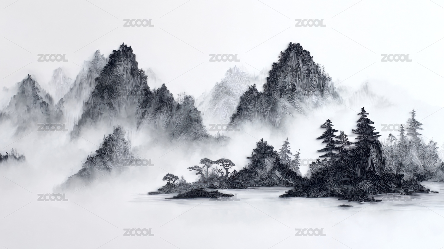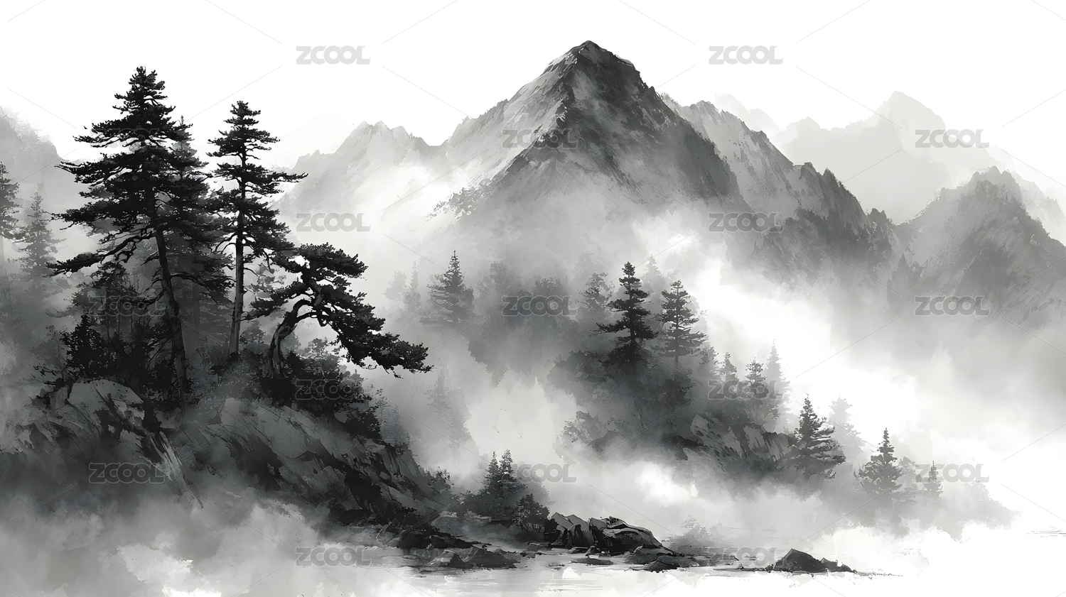 风景, 自然, 清新, 艺术,山水, 云雾, 松树, 湖泊, 远山, 水墨