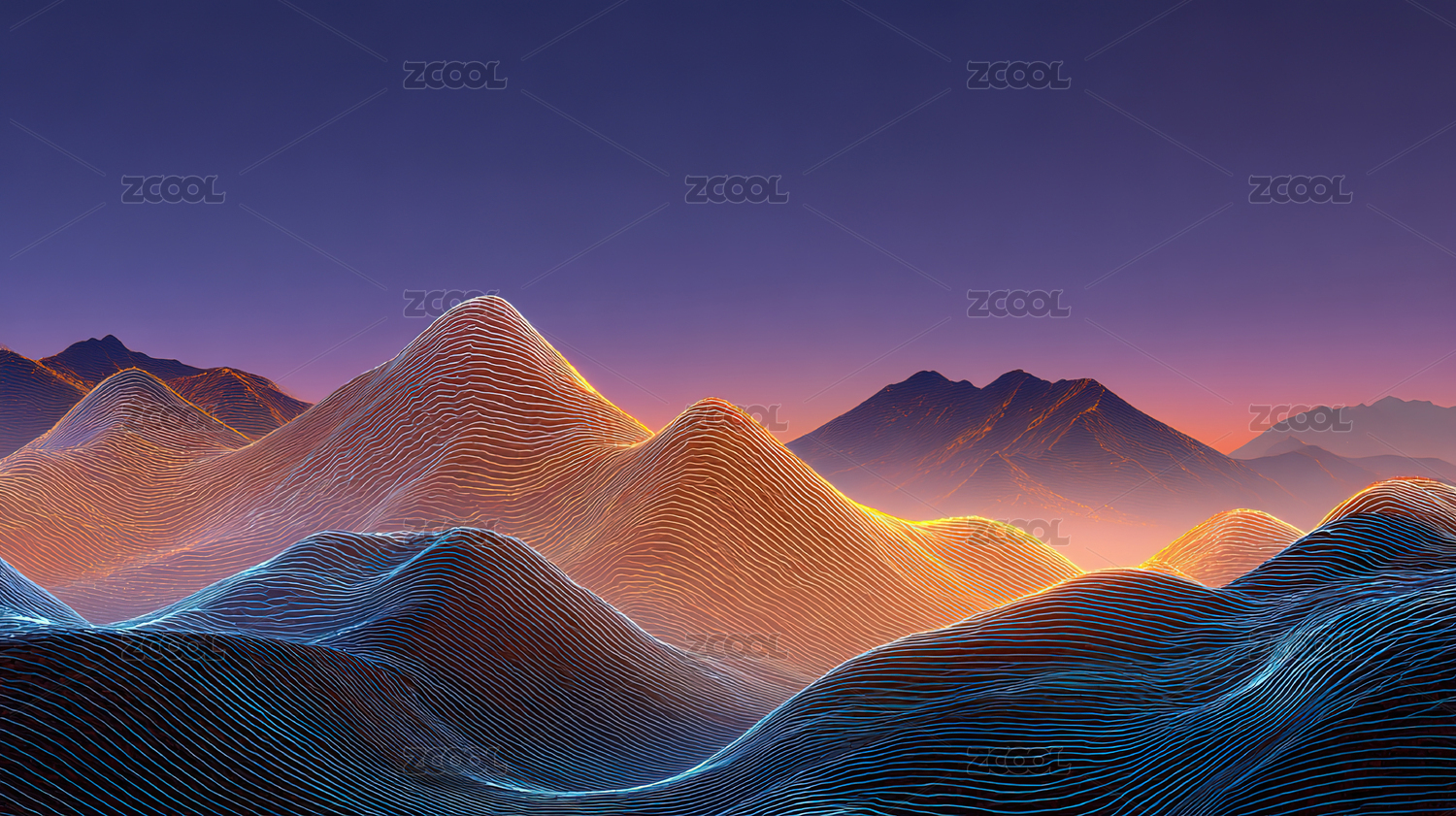 数码极简蓝色山脉立体抽象图形海报网页背景
