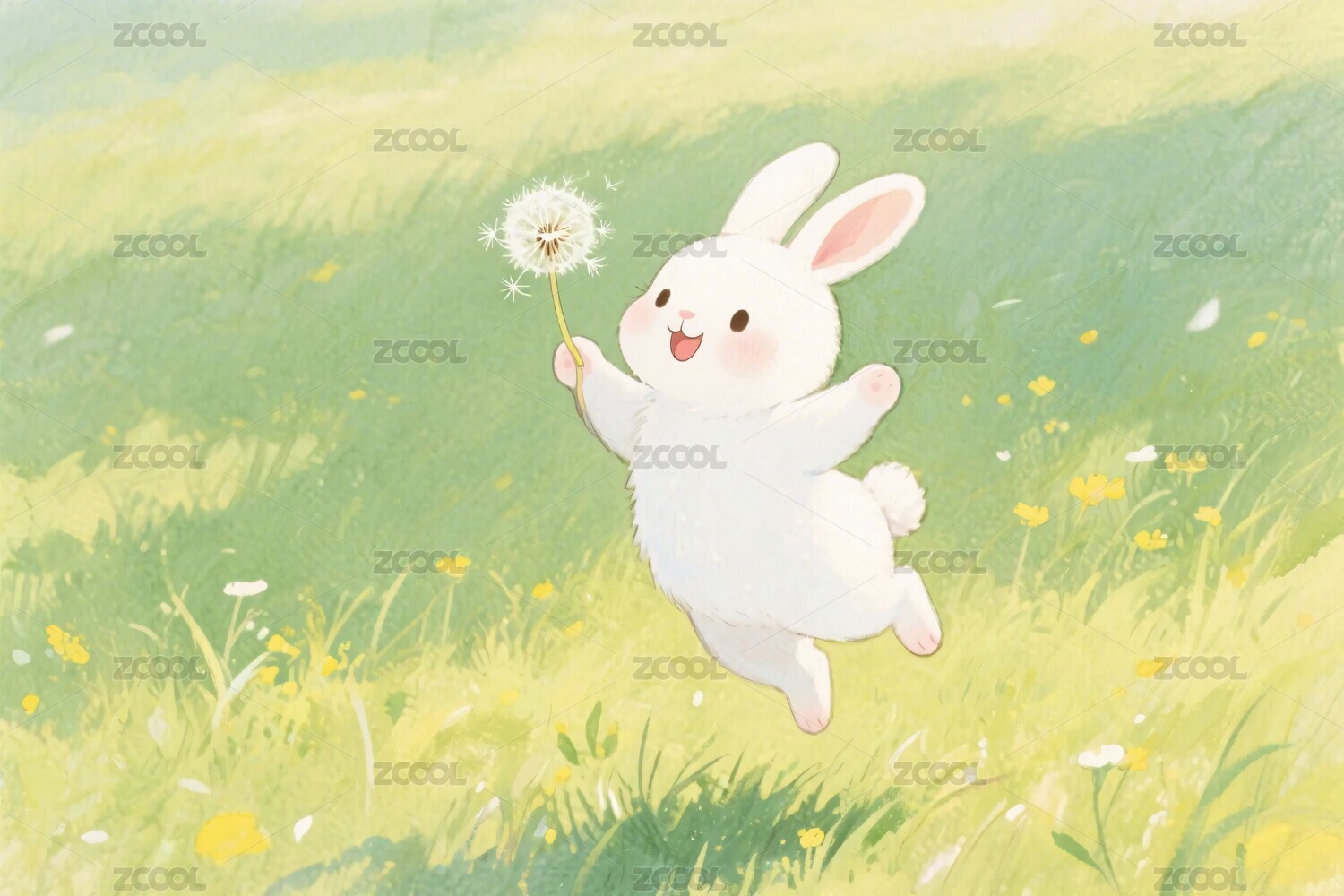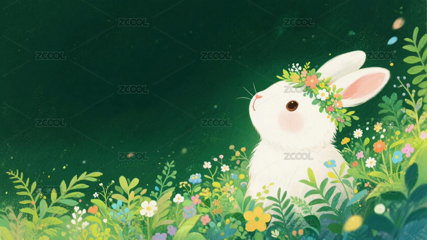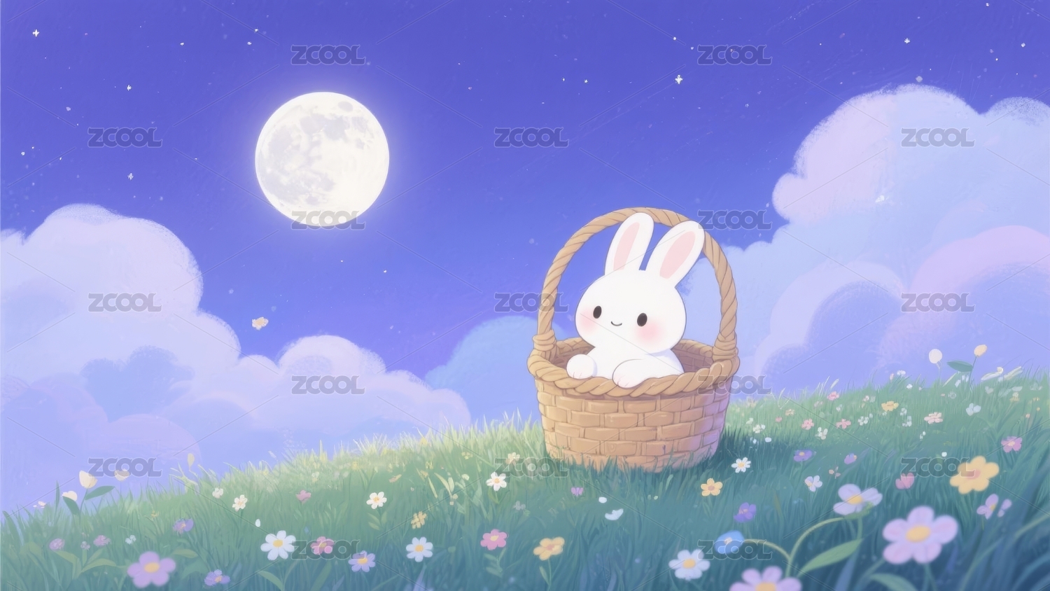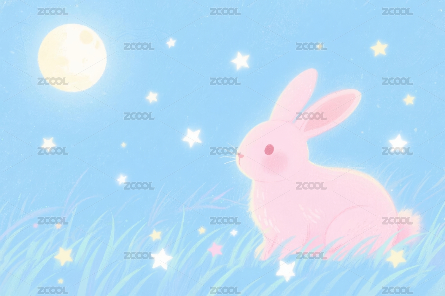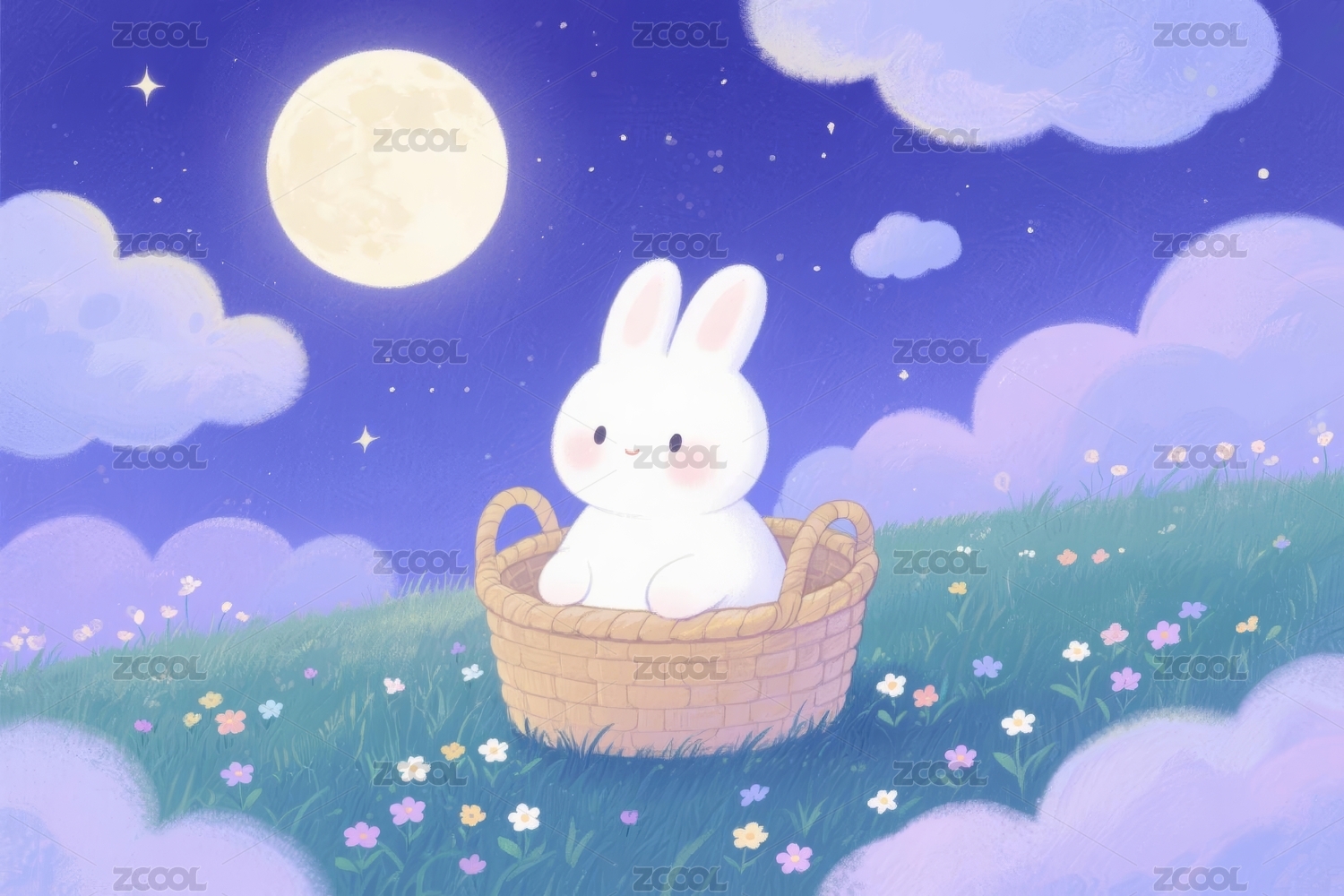 花朵,自然,绿色,梦幻,蓝色,兔子,白色,夜空,星星,草地