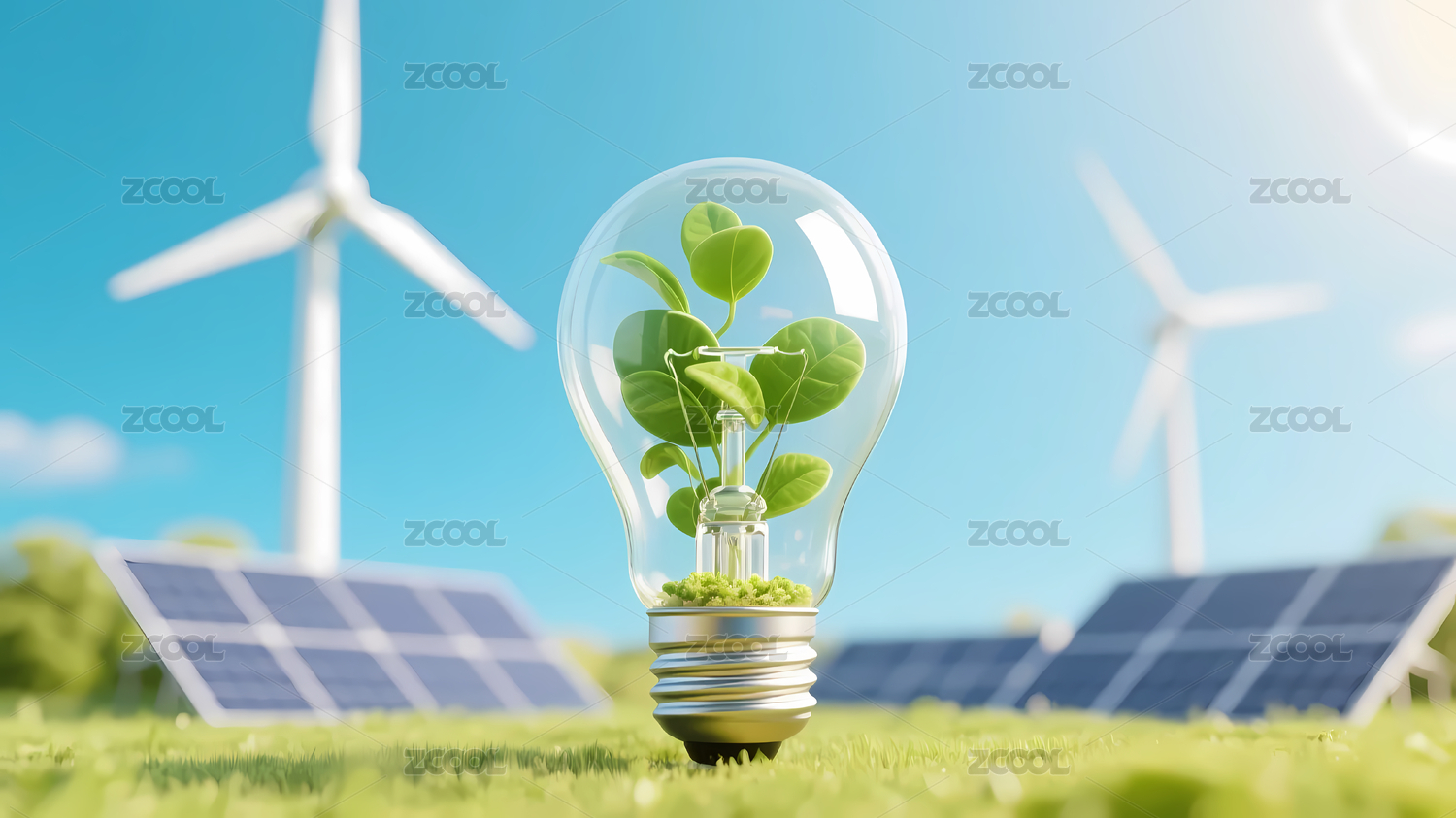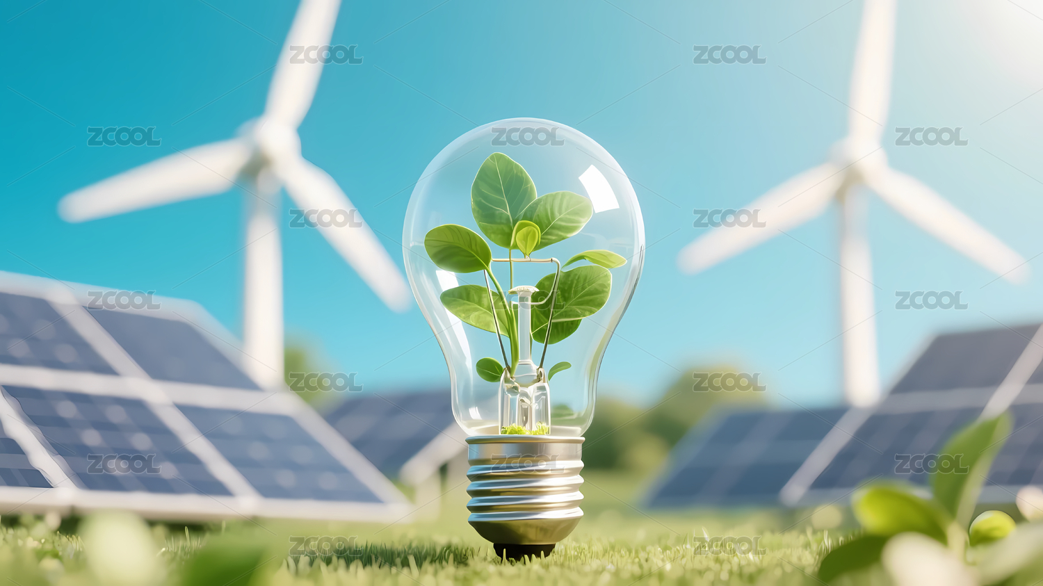 绿色,叶子,植物,蓝天,灯泡,风力发电机,透明,环保,清洁能源,科技