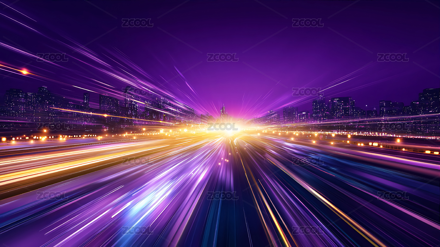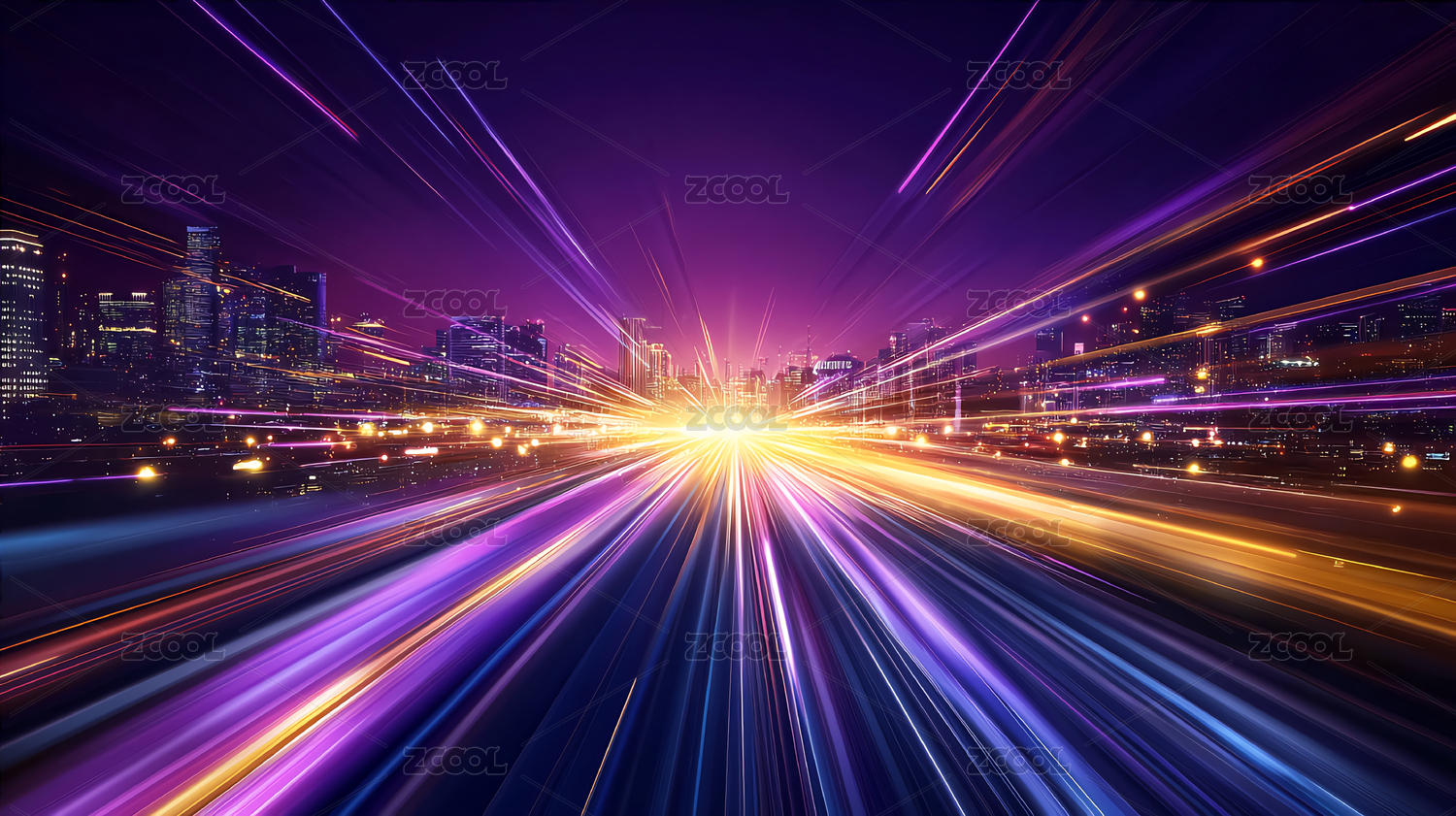 炫彩光速飞驰城市夜景