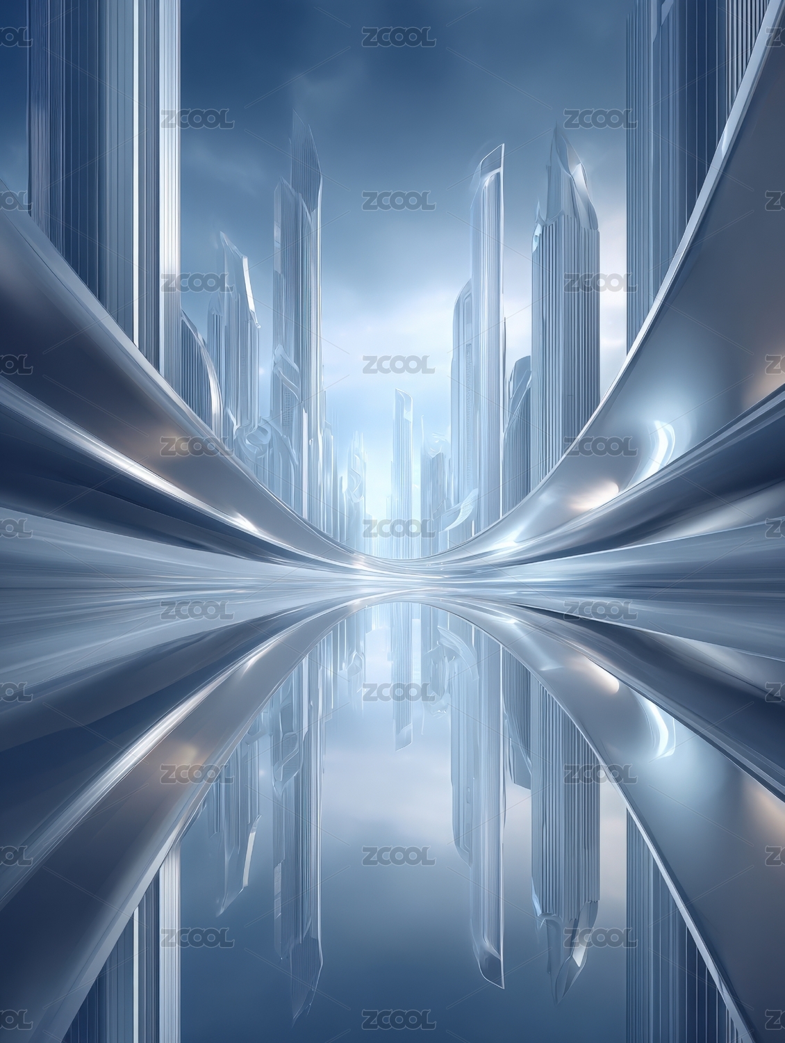 未来城市天际线与流线型道路