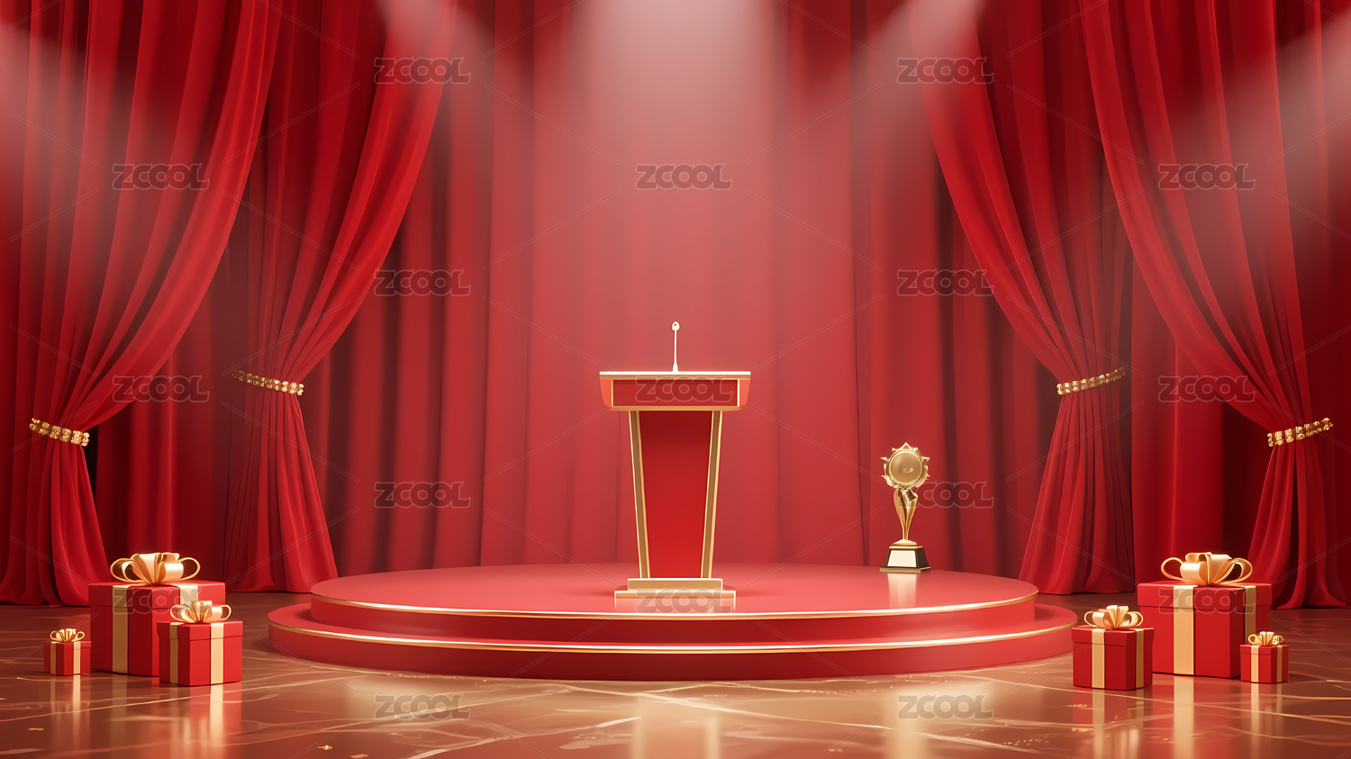 舞台,红色,金色,庆典,圆形,灯光,礼物盒,讲台,边框,隆重