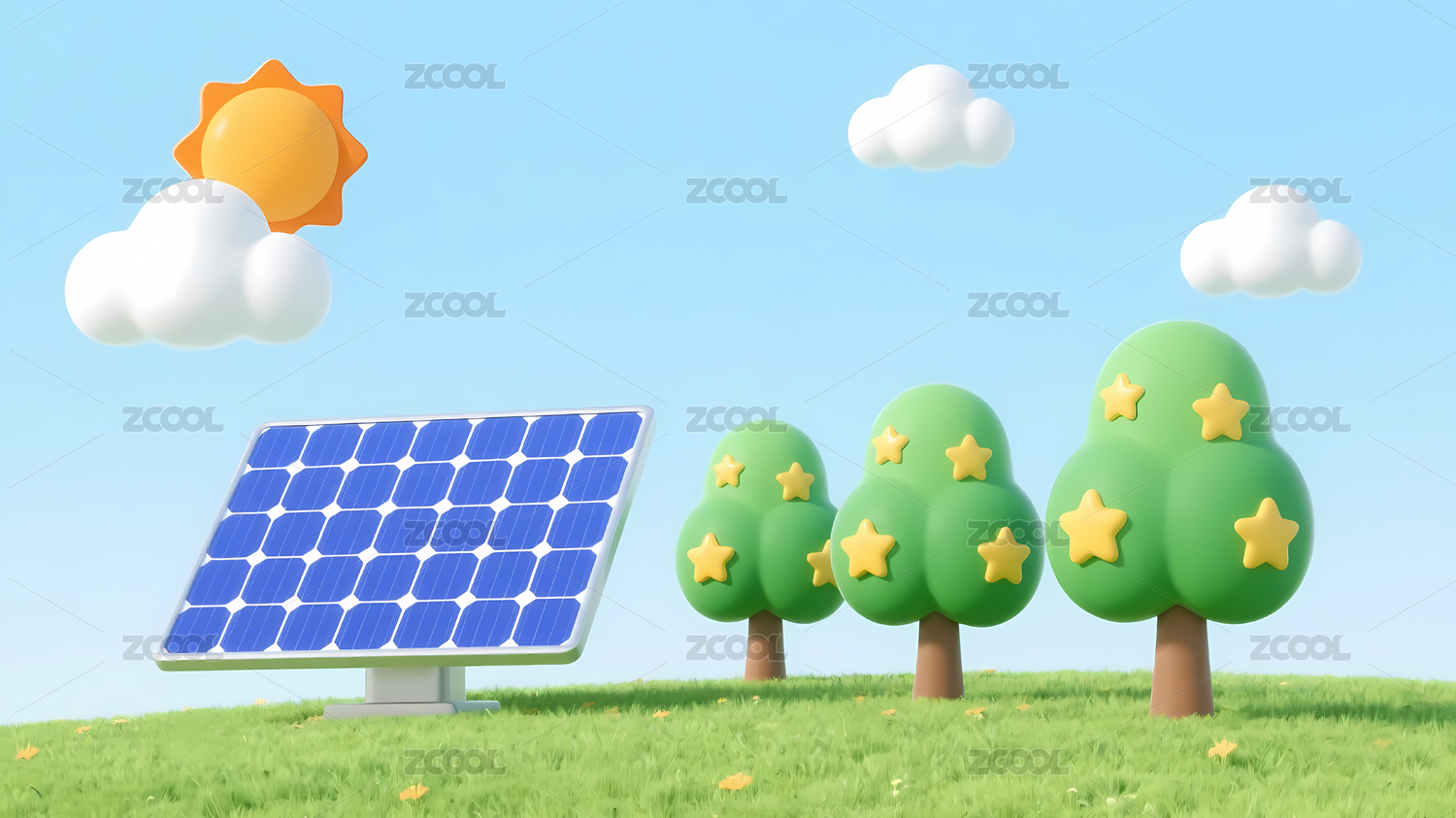 卡通太阳能板场景