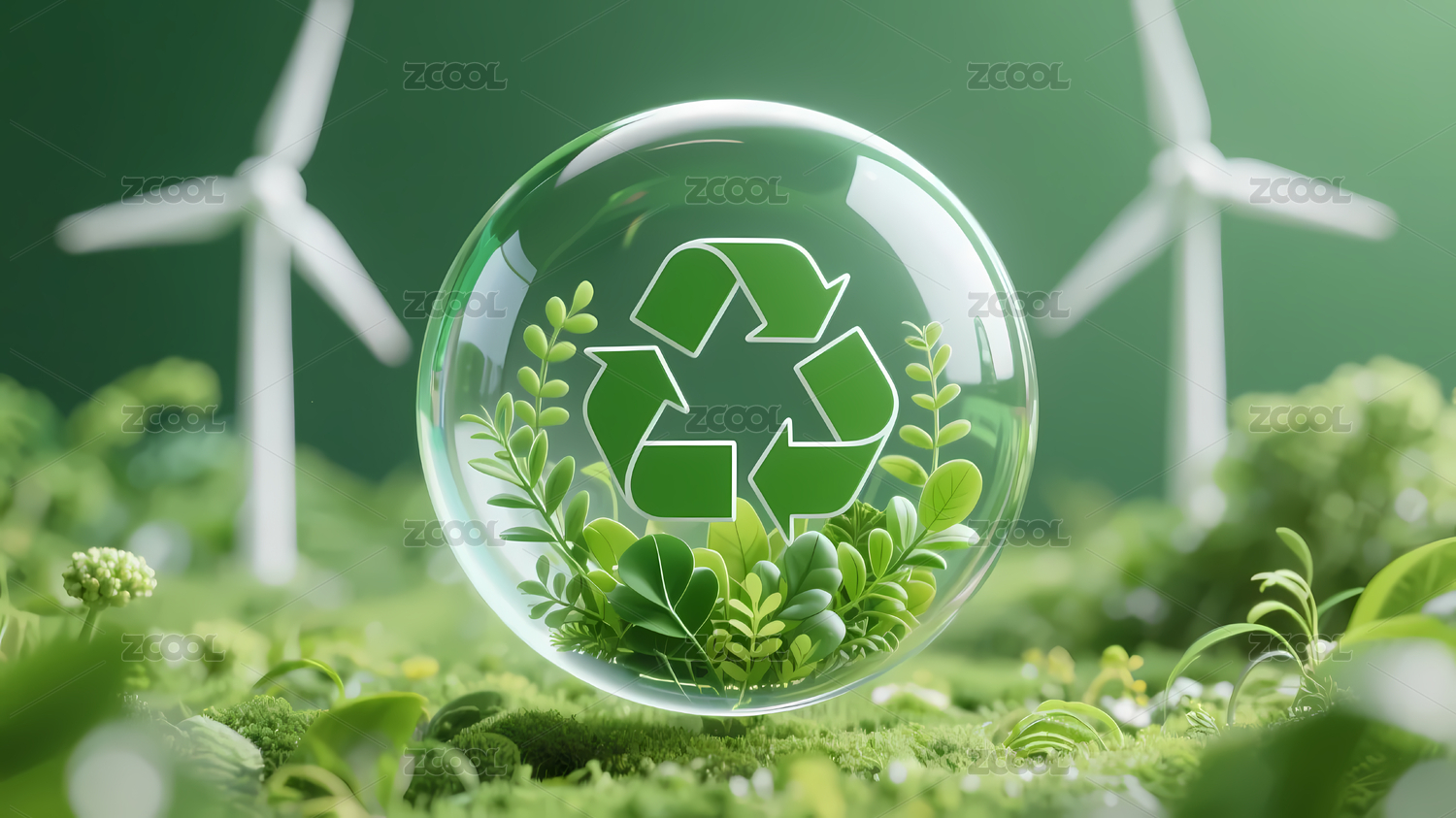 渐变,绿色,叶子,风力,发电机,回收,标志,树木,水滴,灯泡