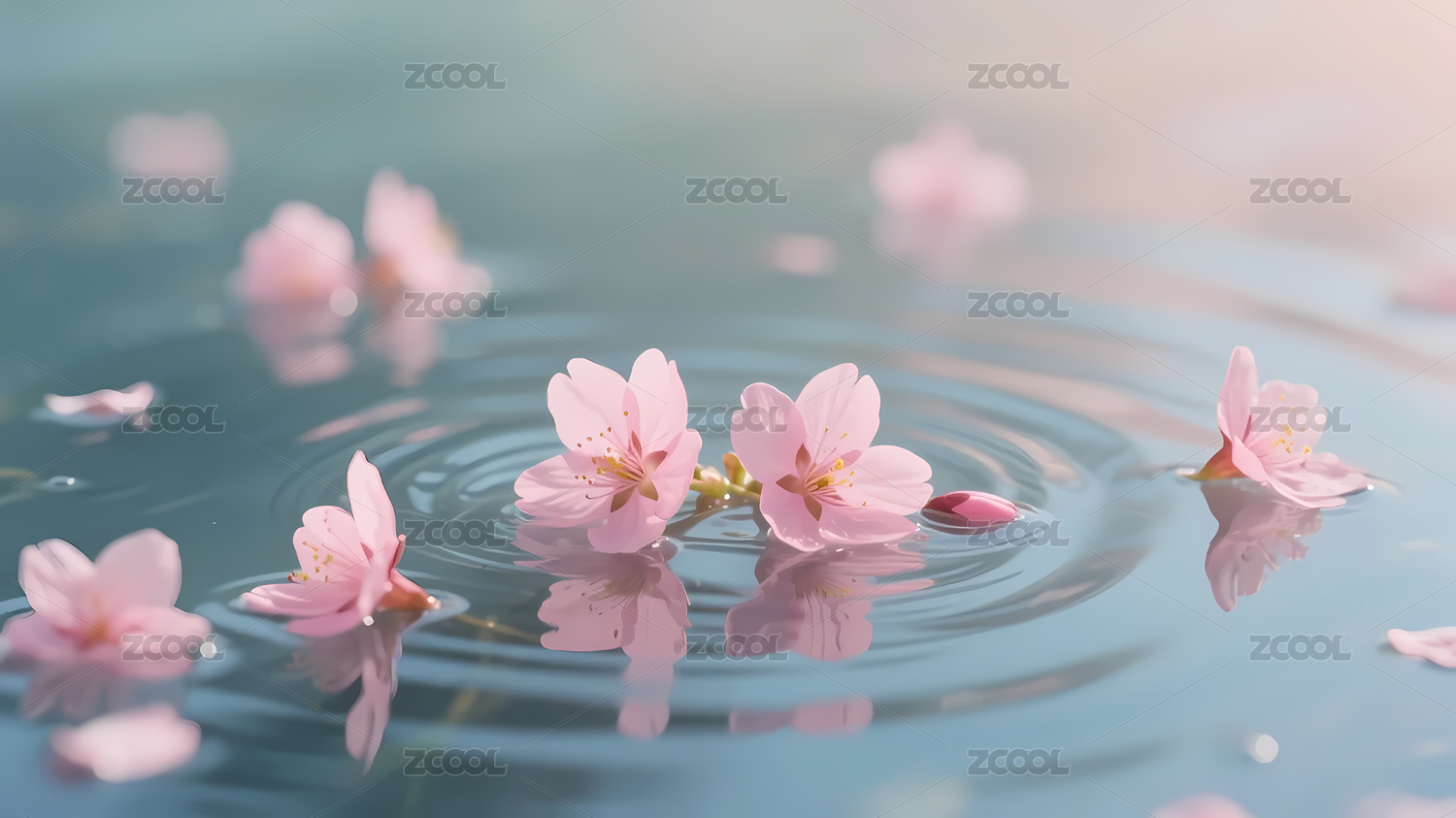 蓝色,视觉,粉色,柔和,宁静,樱花,水面,盛开,涟漪,细腻
