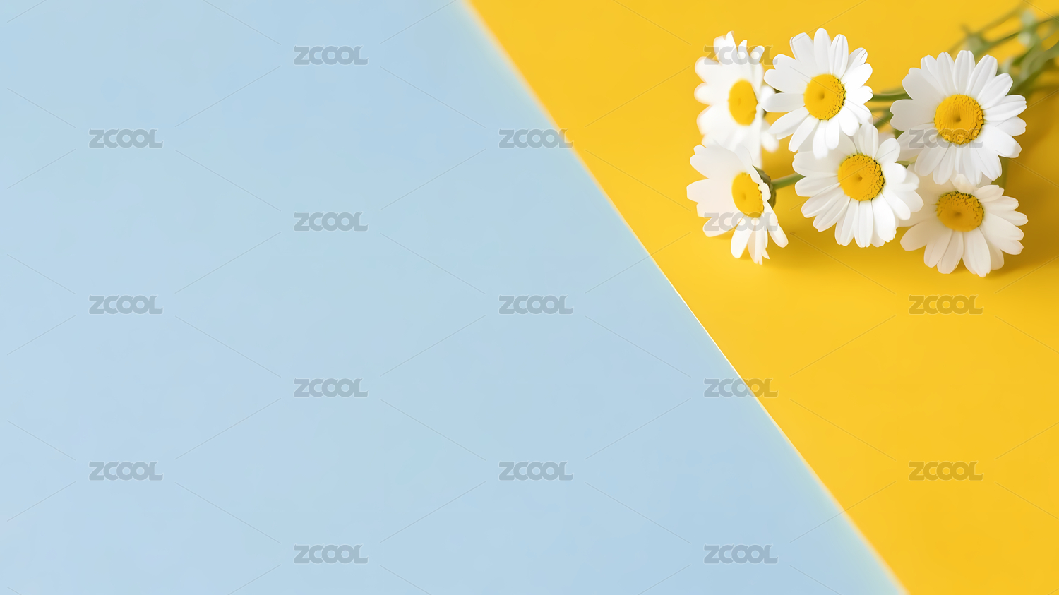 白雏菊点缀蓝黄底