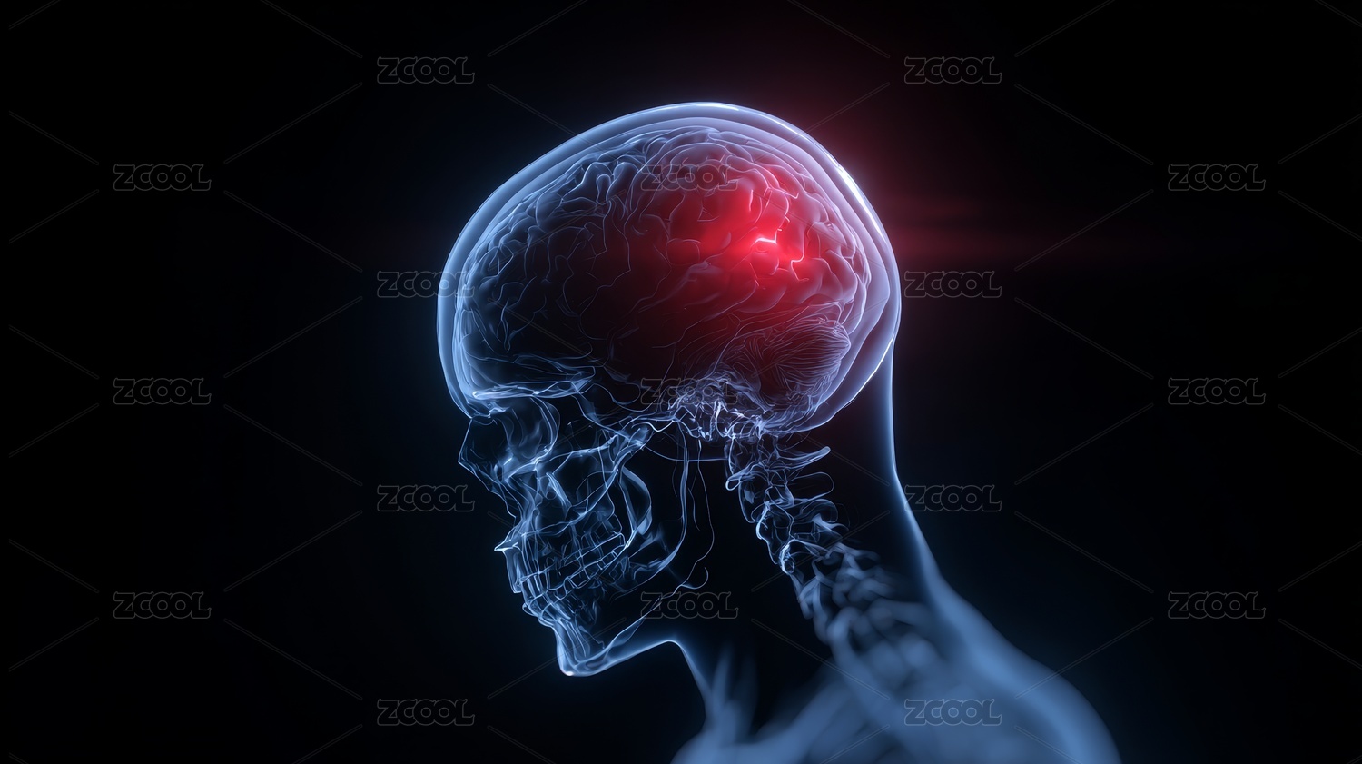 透明头骨内红色脑部图
