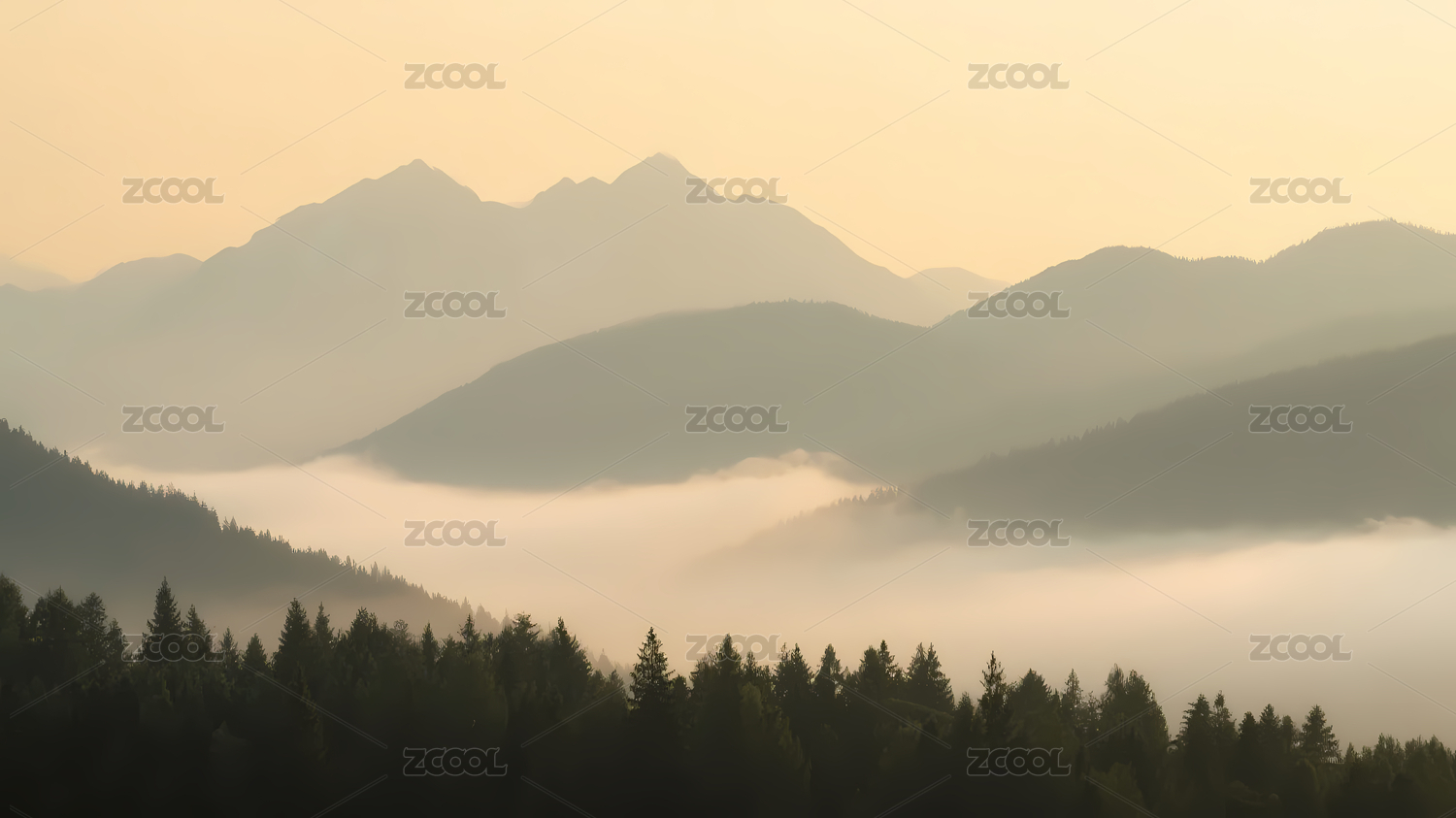 渐变,天空,自然,宁静,神秘,山脉,薄雾,森林,橙黄,山峦