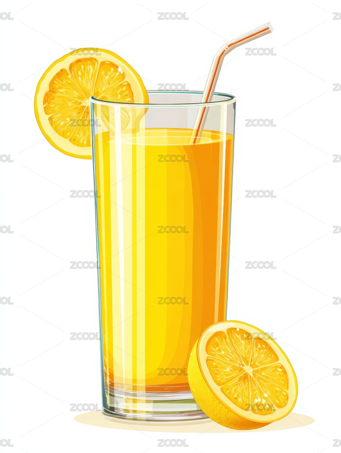 橙汁饮品带橙片插画设计素材