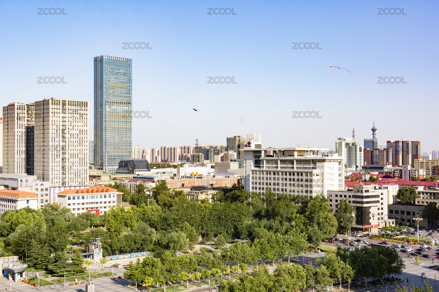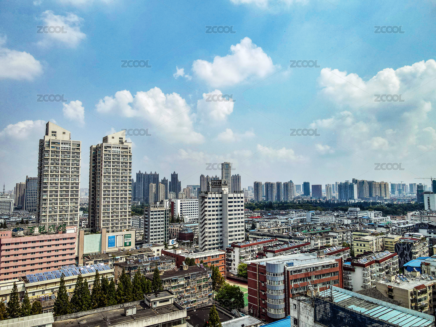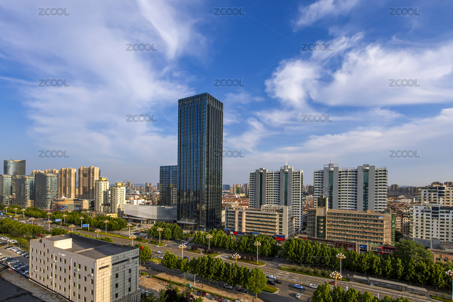 淄博,张店区,老城,中心城区,夏日,蓝天白云,低矮,居民楼,风光,城市
