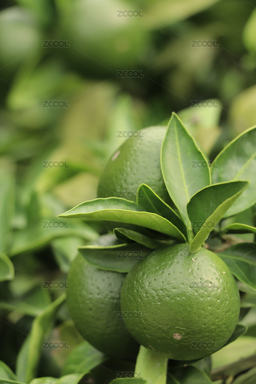 雨后果园里的青桔特写
