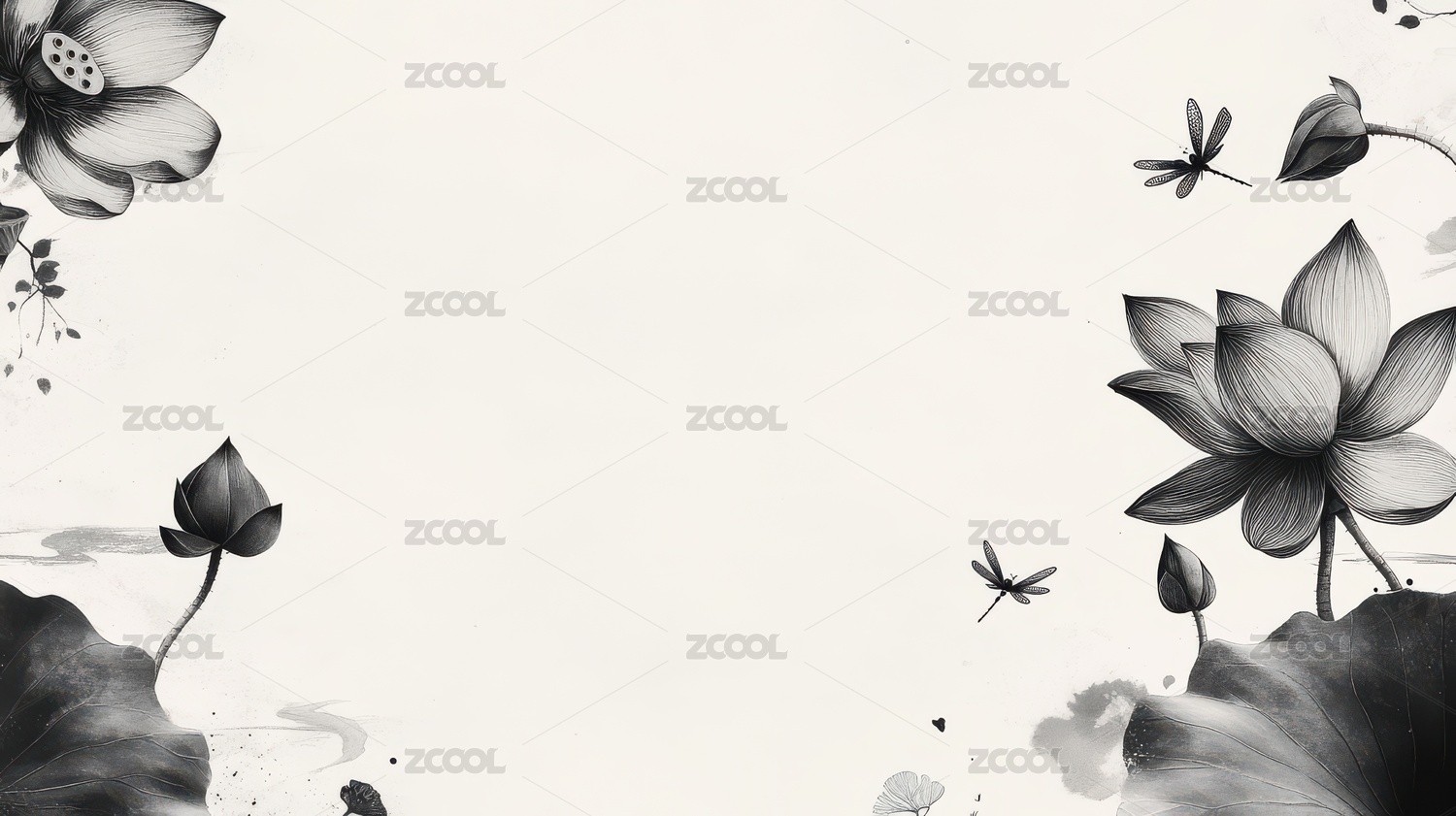 艺术,水波,黑白,荷叶,莲花,墨色,简洁,意境
